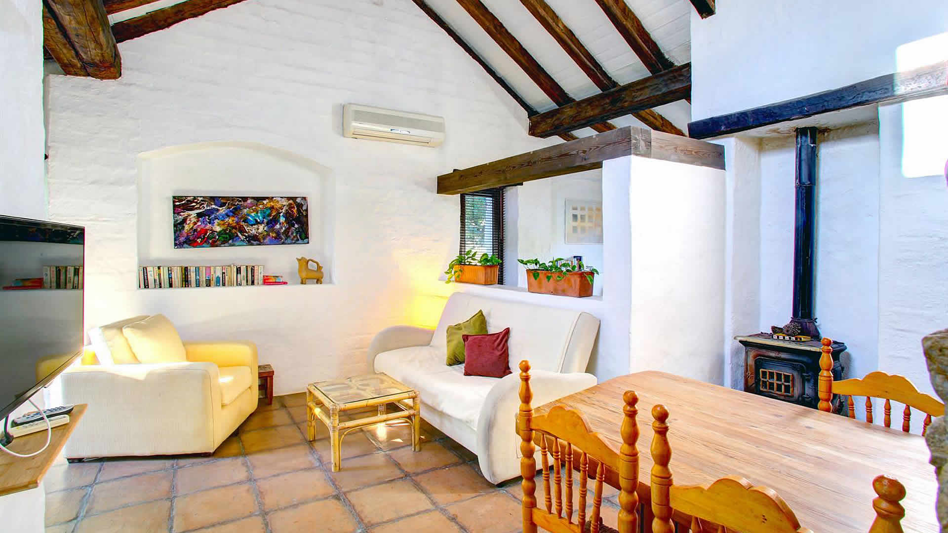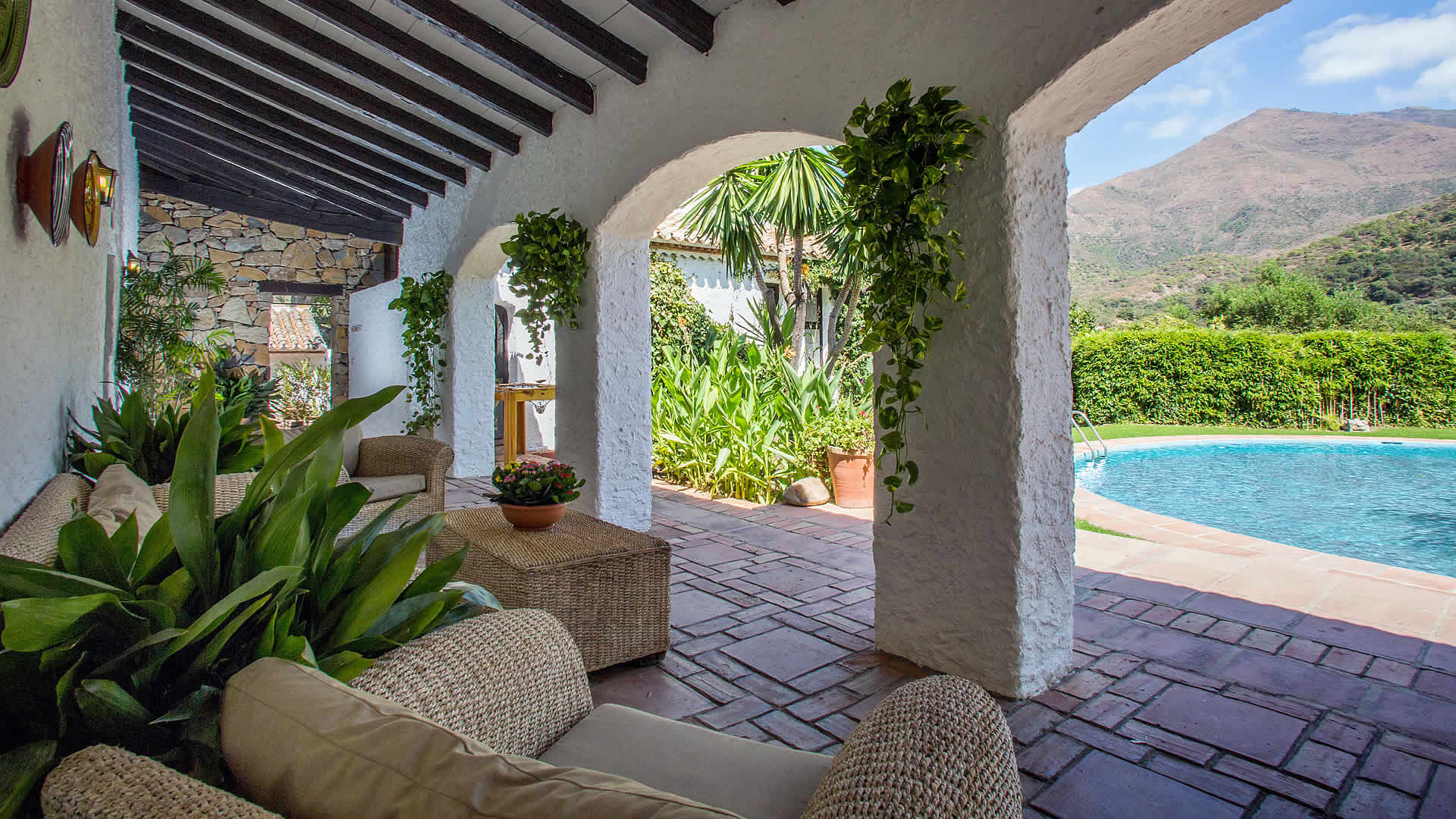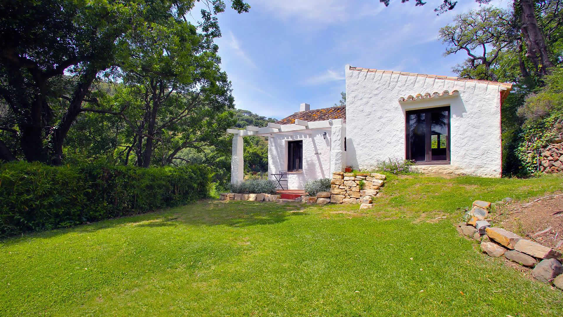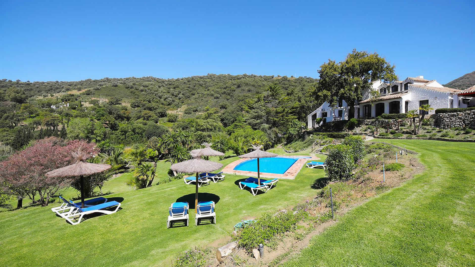 Este hacienda es un mágnifico concepto de un architecto sudafricano que se enamoró con AndalucÃa y decidió desarrollar la arquitectura local con toda su finura. Cuatro de las villas están situadas dentro de la antigua hacienda que rodean una piscina redonda en el patio. La quinta villa, de 1 dormitorios, esta algo más apartado y situada en un nivel inferior. Cada villas tiene su patio o terraza privada para tomar el sol. La piscina redonda es muy apta para familias con niños y dispone de una exuberante vegetación alrededor y sombra. La otra piscina (abierta todo el año) se encuentra en un nivel inferior, muy soleada, con amplias y preciosas vistas sobre el paisaje. La hacienda esta ubicada en un precioso valle verde, entre Casares y el Mediterráneo, a 15 minutos de distancia de cada uno. Hay numerosas posibilidades para el ocio, por ejemplo montar a caballo, viajes en barco de vela o golf. Para excursiones, puede ir a descubrir los Pueblos Blancos, Gibraltar, Ronda o puede cruzar el Estrecho y visitar Tanger.