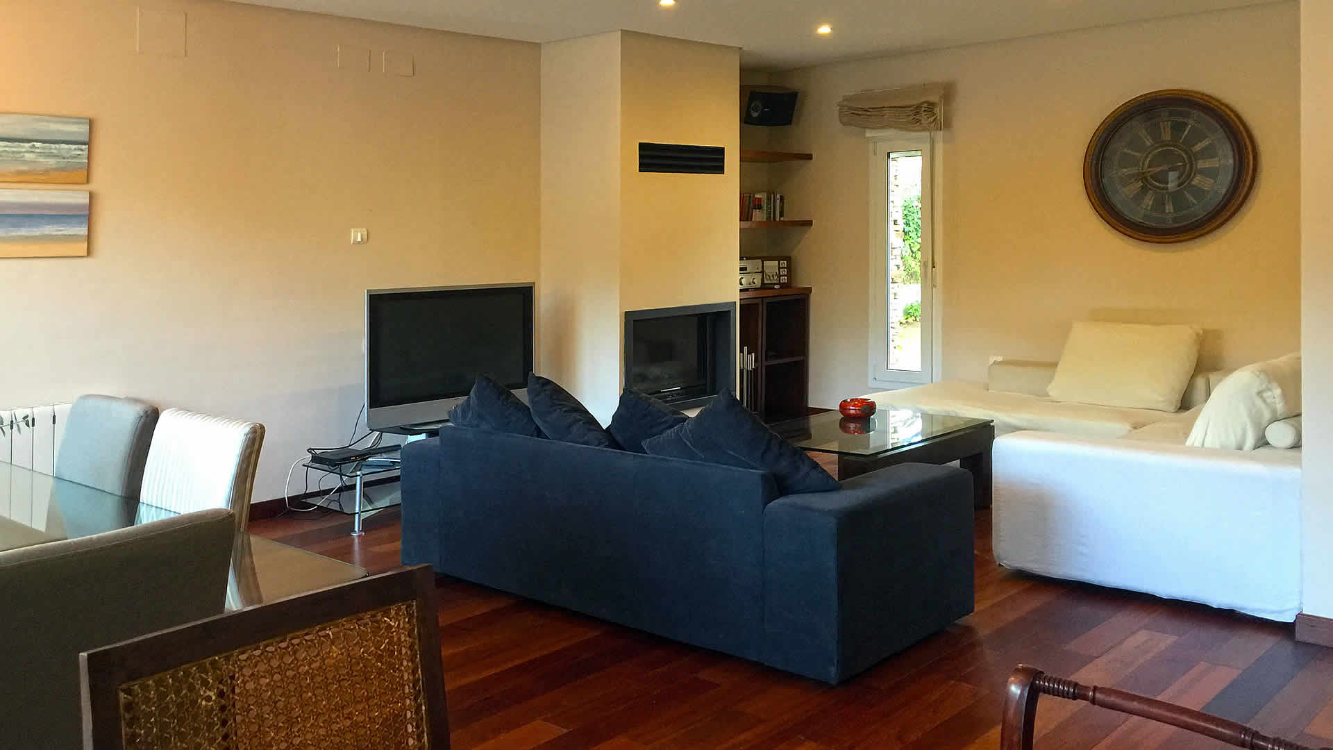 Con una decoración moderna y minimalista, este chalet villa ofrece un alto nivel de confort y un ambiente relajado. Las habitaciones ocupan dos plantas: en la planta baja hay un amplio salón comedor con TV por satélite y DVD/TDT y cocina bien equipada con vitro cerámica, horno, frigorÃfico/congelador, microondas, lavavajillas y lavadora. En esta planta encontrará también un baño y dos dormitorios con 2 camas cada uno. En la primera planta esta el dormitorio principal con cama de matrimonio, vestidor y baño ensuite con bañera con hidro masaje. Los otros 2 dormitorios en la primera planta tienen 2 camas cada uno y comparten un baño con bañera/ducha, WC y lavabo. Hay aire acondicionado en alguna estancia.Nota: Dispone de conexión a Internet Wifi; es gratuita para estancias de 7 ó más noches.