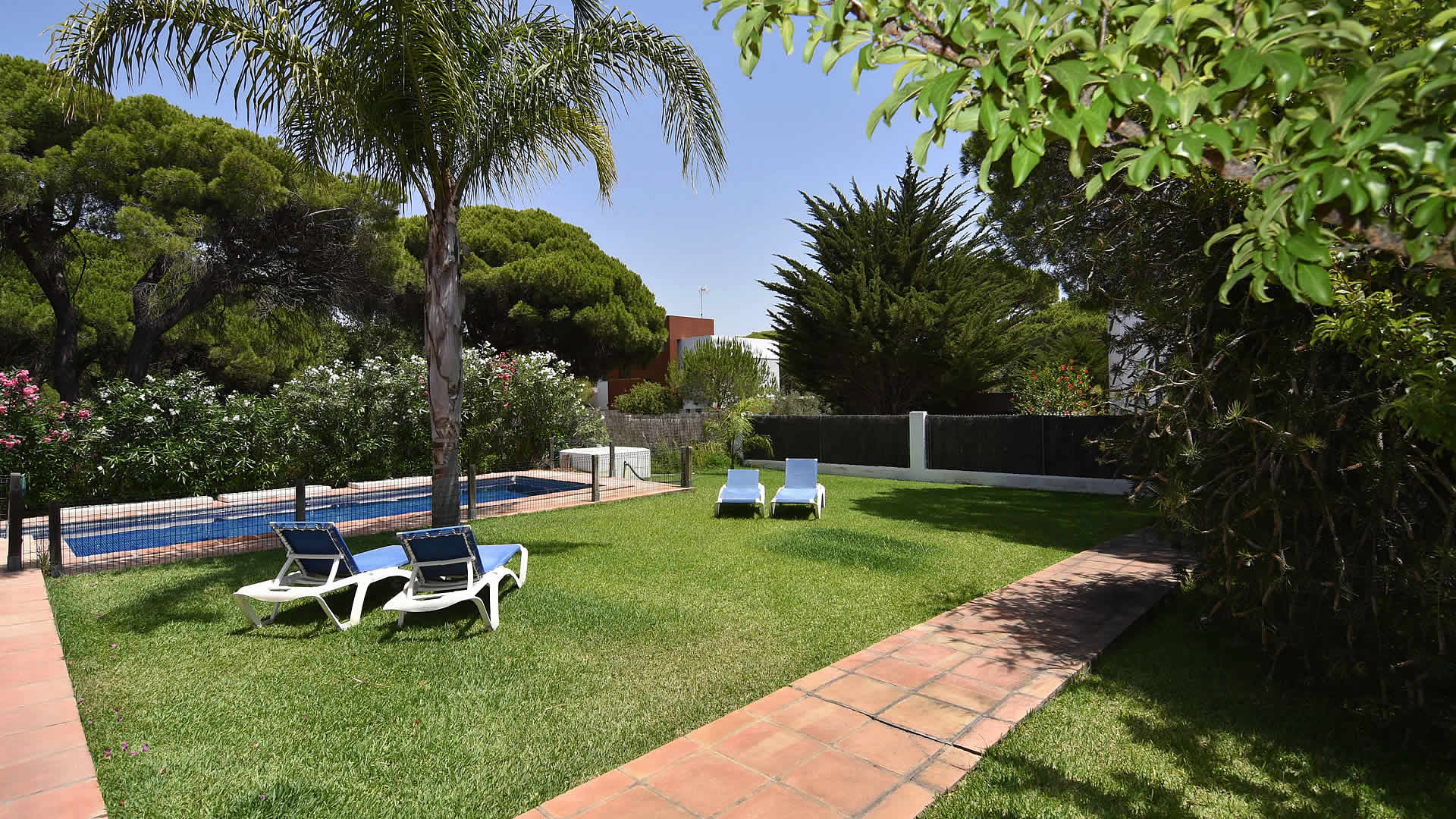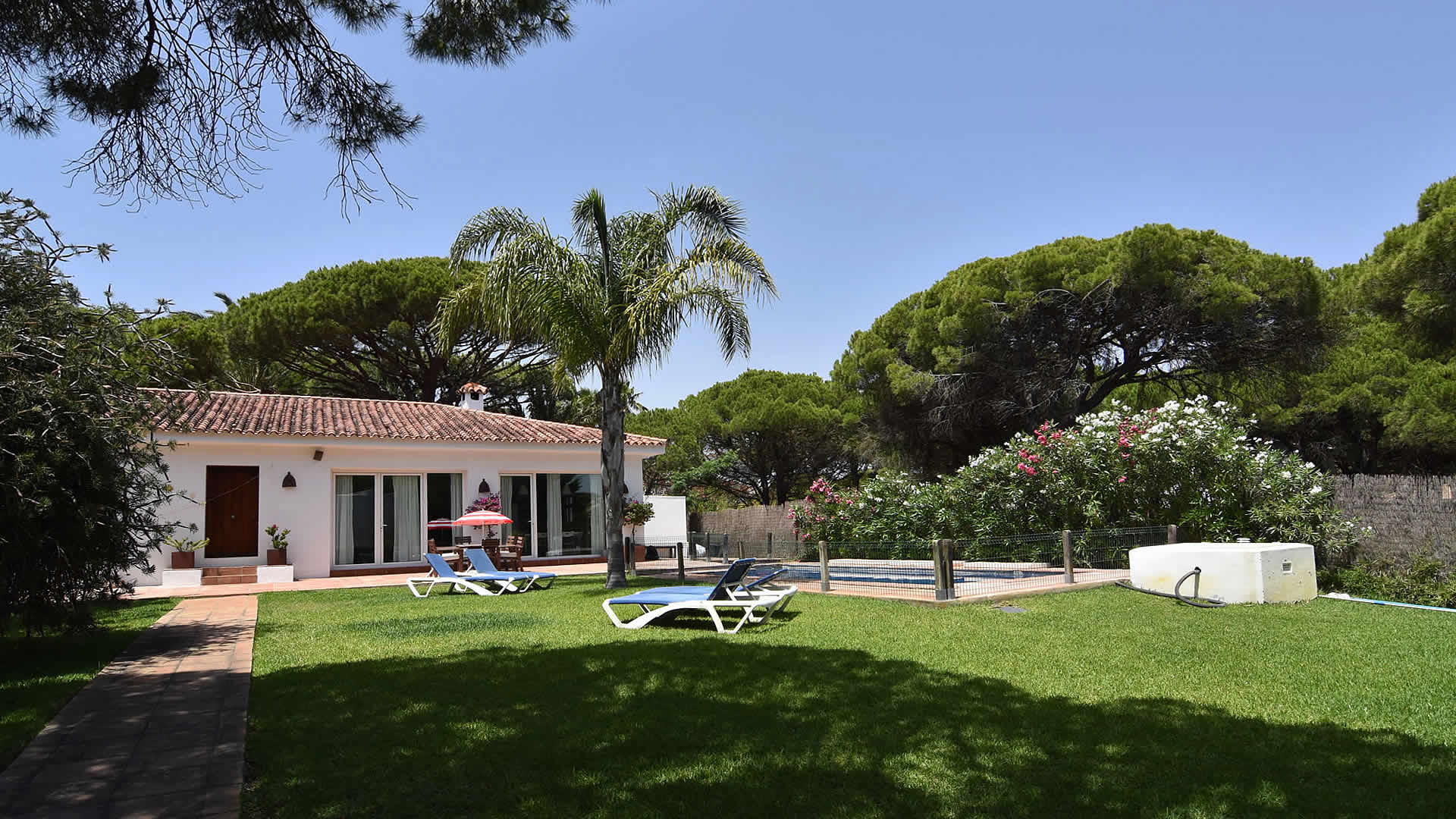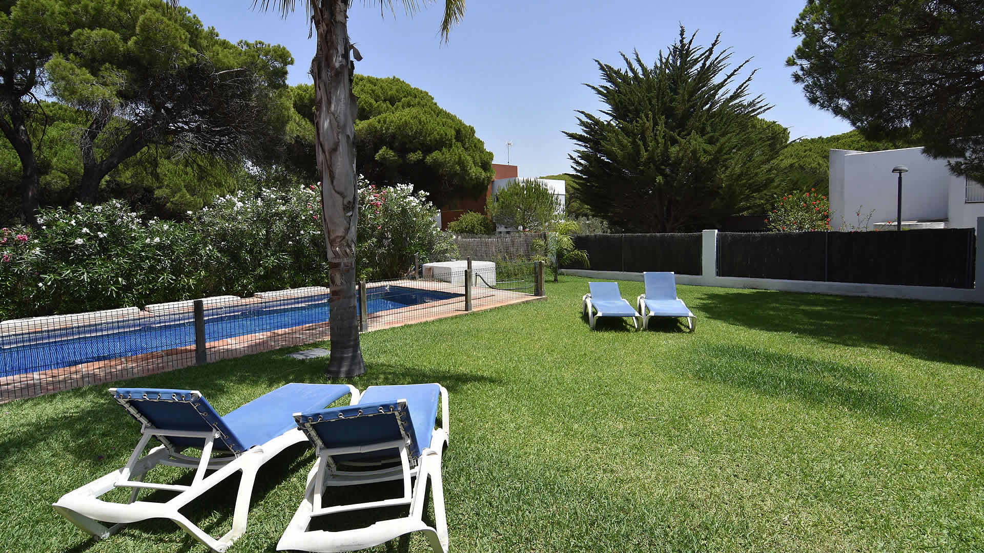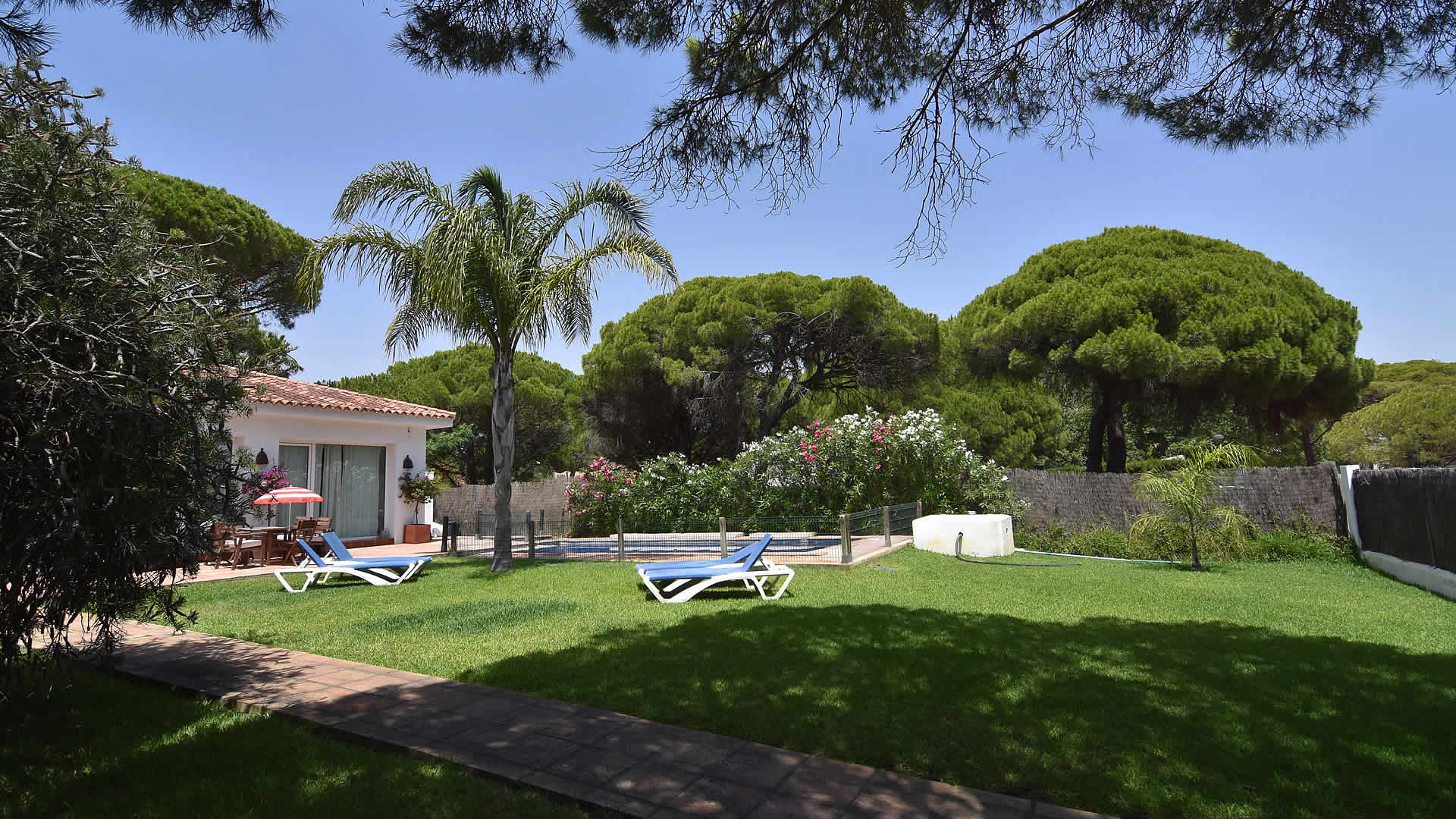 Wat kun je je nog meer wensen op vakantie? Een geweldige tuin met gazon van 1400m2, een aantrekkelijk privé zwembad en twee terrassen, één met zon en de ander met schaduw. Om buiten te eten is een barbecue aanwezig evenals tuinmeubilair en 2 ligstoelen. In de rustige omgeving zijn er mogelijkheden om te tennissen, te volleyballen of om gewoon lekker pootje te baden aan de schitterende stranden die op loopafstand (600 meter) liggen. Kortom: alle ingrediënten voor een perfecte en luie vakantie! Een supermarkt, restaurant, bar en krantenkiosk liggen allen op 5 minuten loopafstand, meer uitgebreide voorzieningen vindt u in het centrum van Conil de la Frontera zelf, slechts een kwartiertje rijden (7 km.) Van hieruit is het ook gemakkelijk om enkele van de Andalusische hoogtepunten te ontdekken, zoals de stad Jerez de la Frontera met de beroemde sherry-wijnkelders, de fameuze Andalusische paardenshow, of een tocht langs de witte dorpen die begint bij de antieke stad Arcos de la Frontera. Als u überhaupt al weg wilt van deze idyllische plek bezoek dan Sevilla, de stad waar het betoverende Moorse erfgoed van dit deel van Spanje het best bewaard is gebleven.