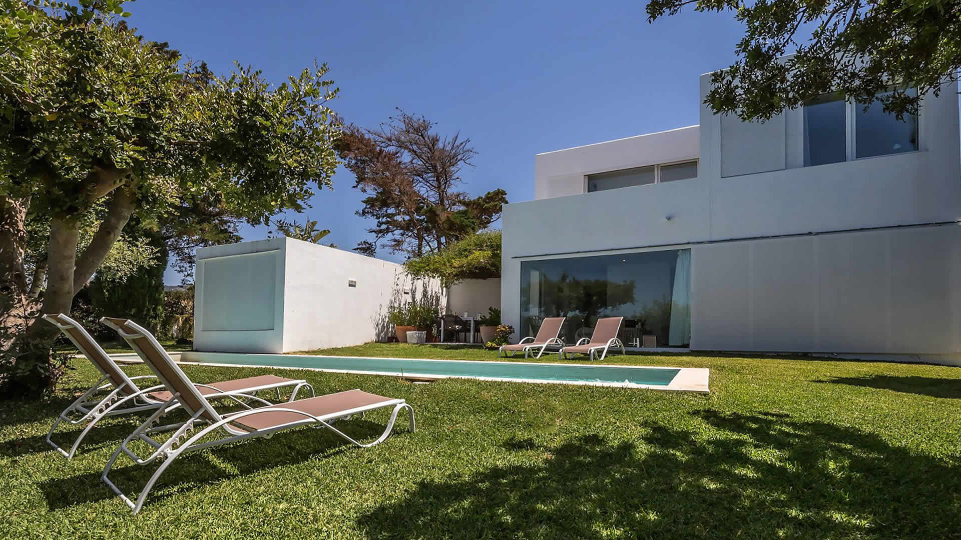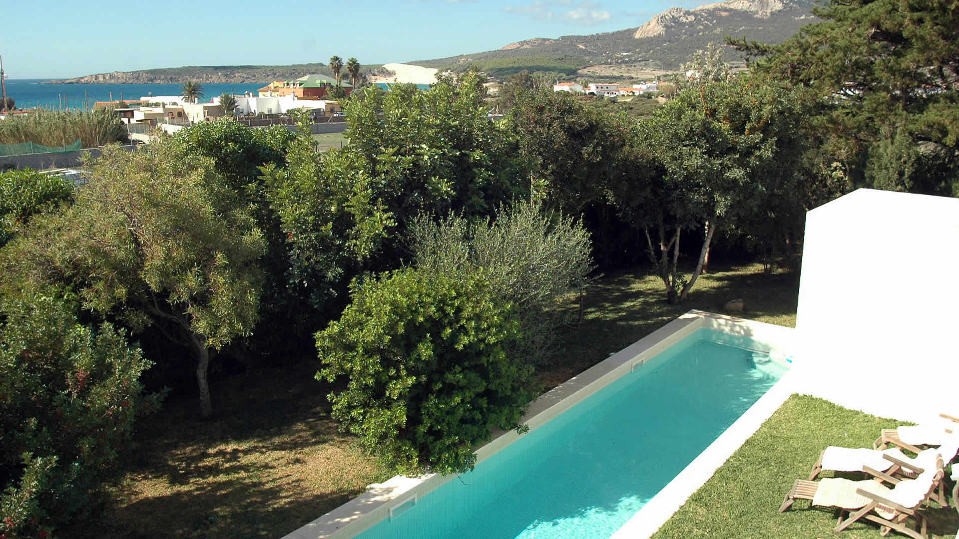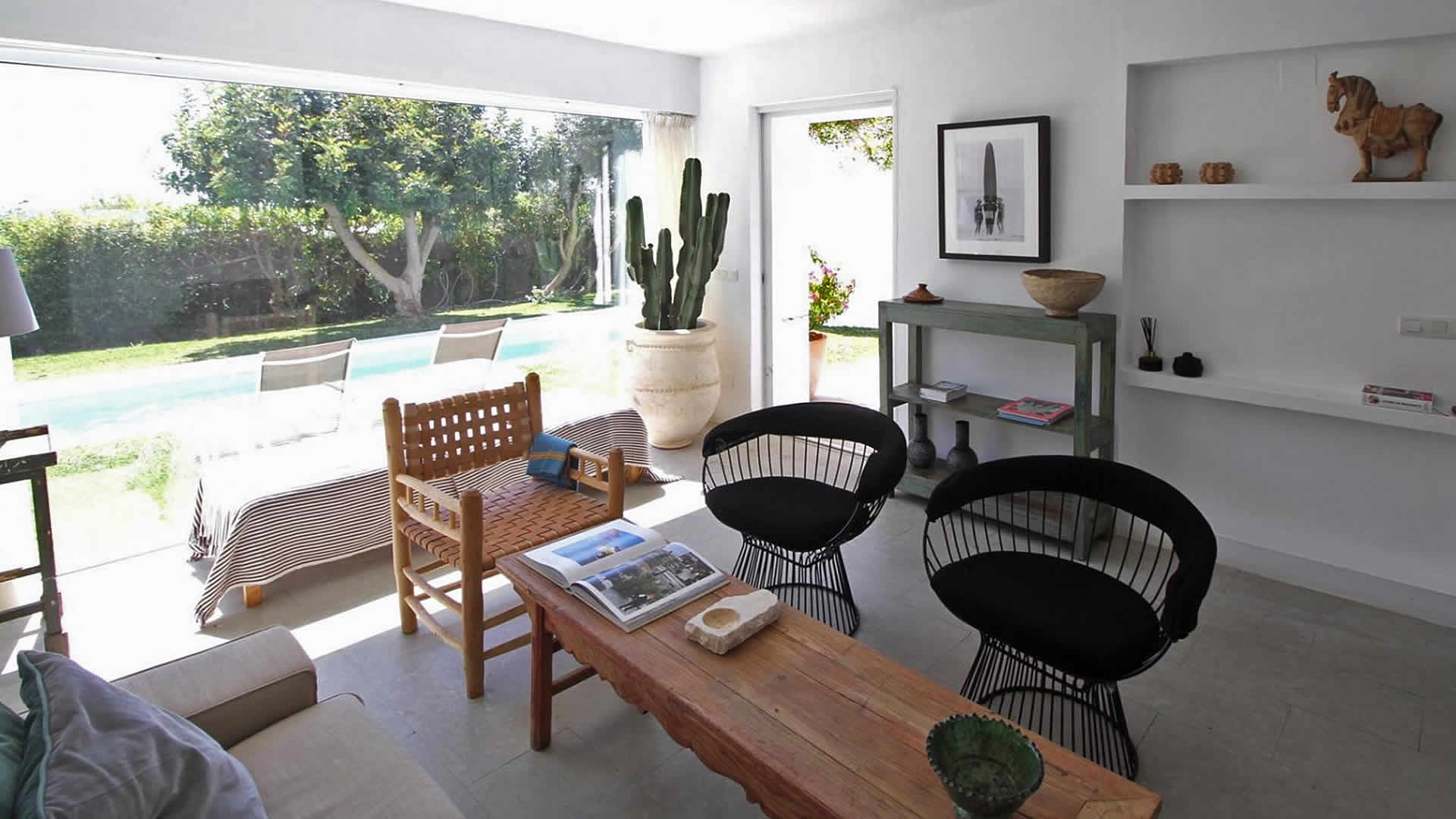 Deze verbluffend mooie villa heeft een moderne witte inrichting en is voorzien van alle hedendaagse comfort. De villa heeft model gestaan in verscheidene interieurbladen! De minimalistisch ingerichte zitkamer heeft een groot raam met uitzicht op de tuin. Er is een open haard voor de koudere dagen buiten het seizoen. Aangrenzend aan de zitkamer vindt u een relaxruimte die eventueel kan worden gebruikt als derde slaapkamer; deze ruimte is voorzien van een grote matras van circa 3x2 meter, flatscreen televisie, Dvd-speler en een muziekinstallatie. De apart gelegen keuken/eetkamer is volledig uitgerust met een koelkast/vriezer, magnetron, wasmachine en een vaatwasser. Tevens bevindt zich op de begane grond een volledig ingerichte badkamer. Op de eerste etage vindt u de ouderslaapkamer met fantastisch uitzicht op zee, alsmede de andere slaapkamer met twee aparte bedden. Naast een tweede complete badkamer vindt u op deze etage twee terrassen met prachtige uitzichten.
