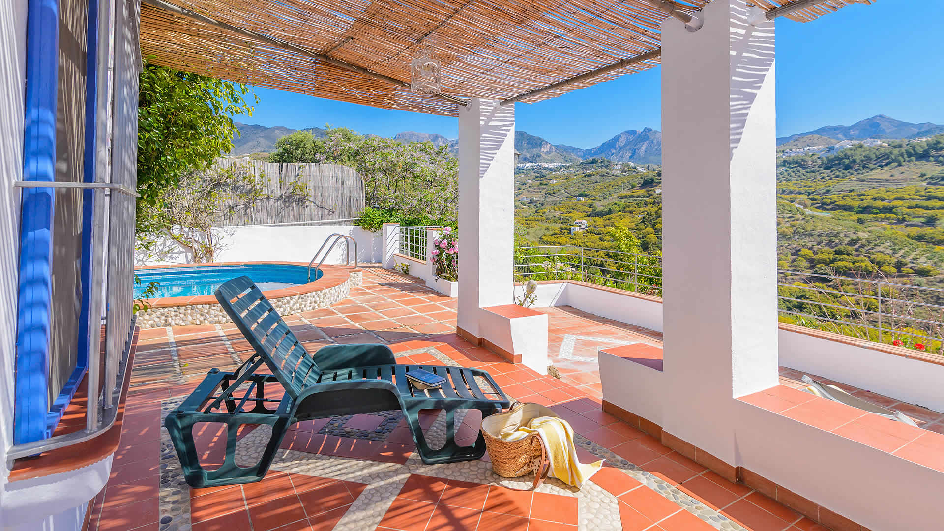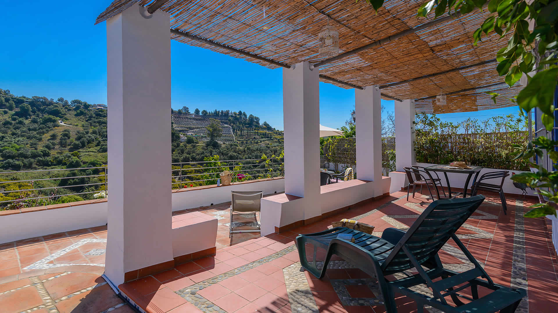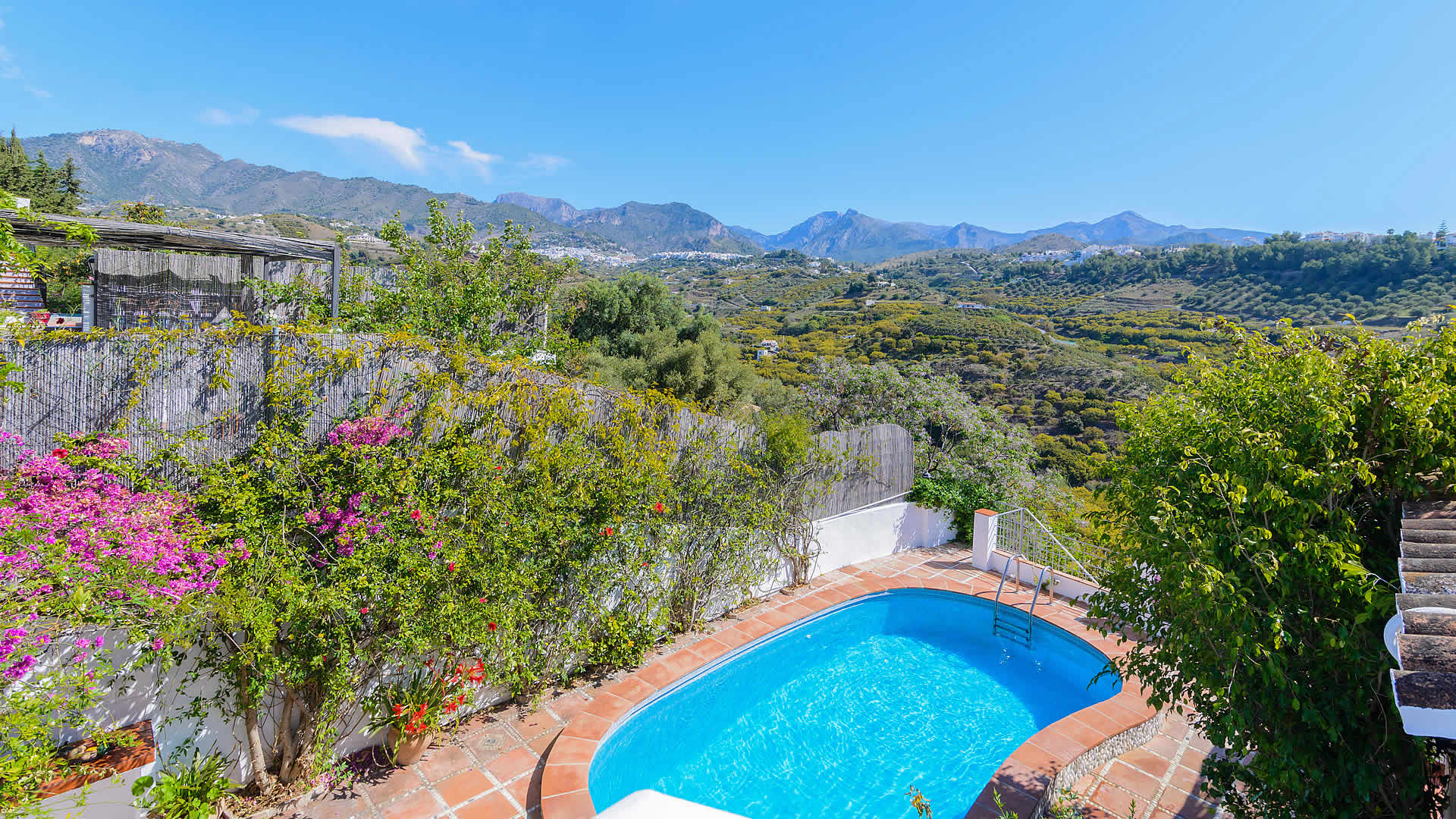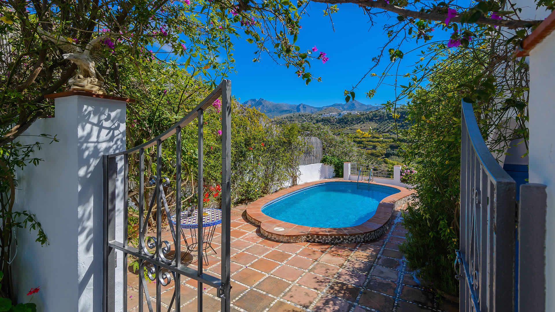 Pequeño y precioso cortijo, completamente restaurado y situado en el campo en los alrededores de Frigiliana (3 kms). Aquí pasará unas vacaciones pacíficas y se puede disfrutar las comidas en el exterior con maravillosas vistas panorámicas sobre el campo, el pueblo hasta llegar al mar. Tiene un bonito porche, cubierto con una parra. Hay barbacoa. Hay una atractiva piscina de 3,5m x 7,5m, en forma de riñon. Por su ubicación en la Axarquía, esta casa es un excelente punto de partida para visitas a las cuevas de Nerja, el Alhambra de Granada o el museo Picasso en Málaga.
