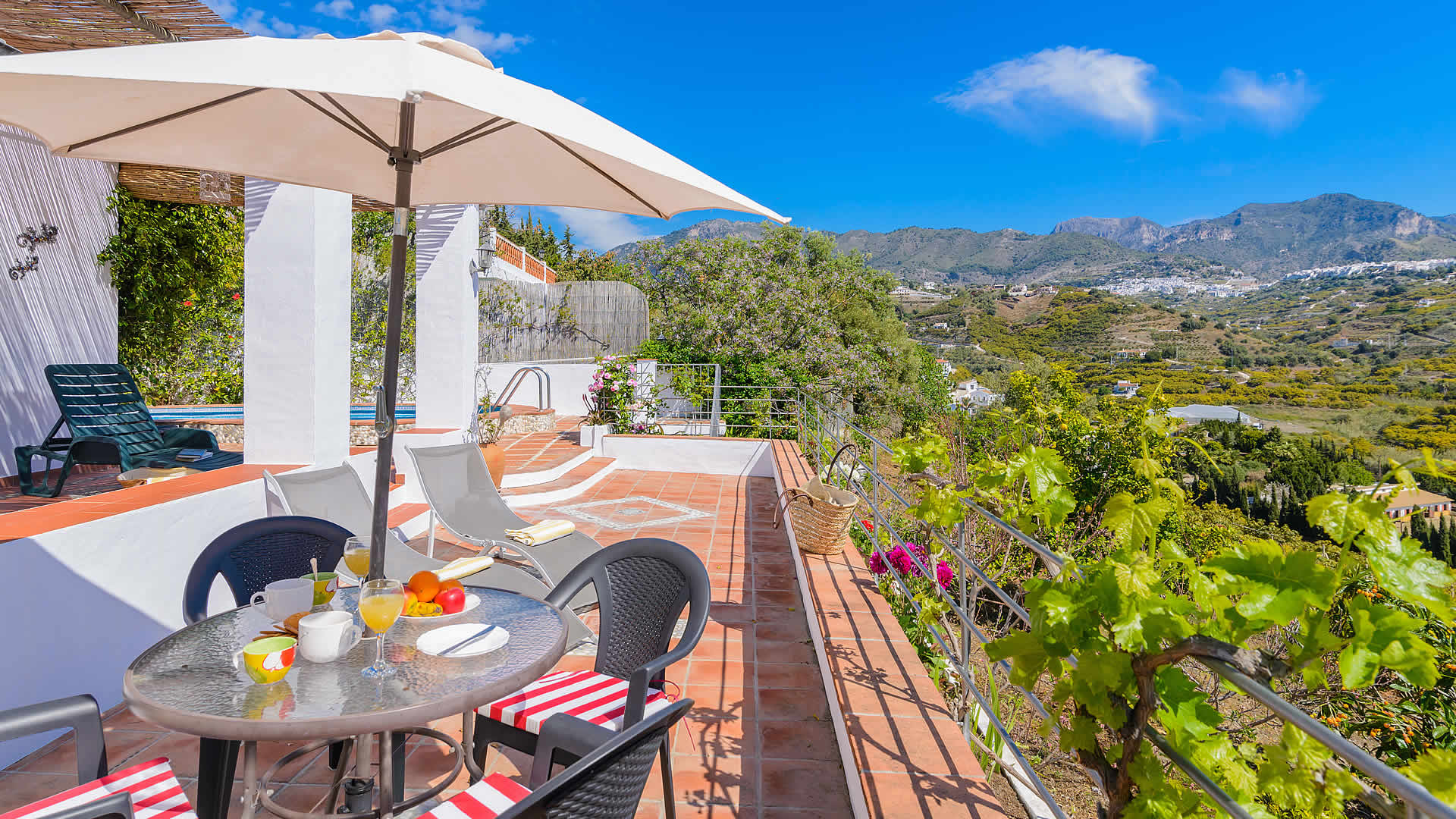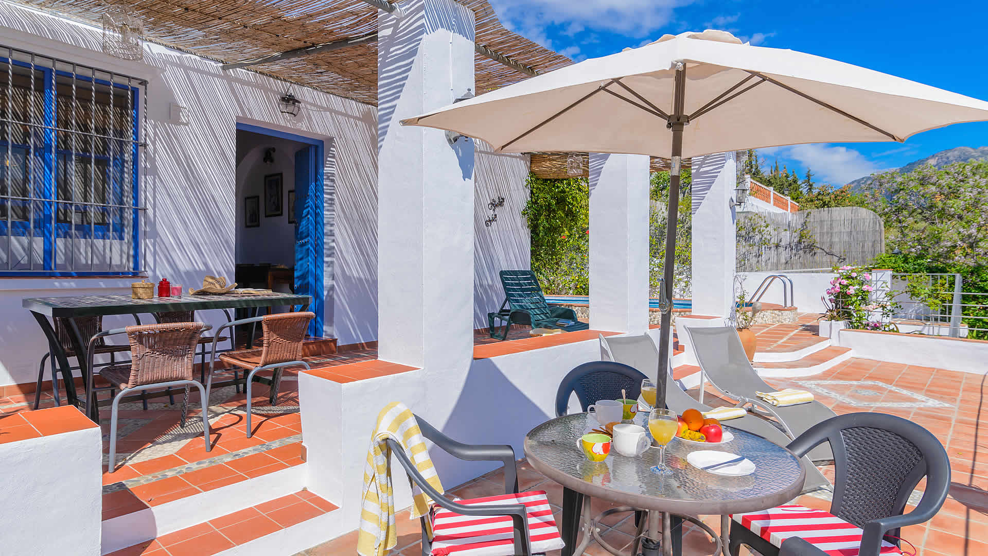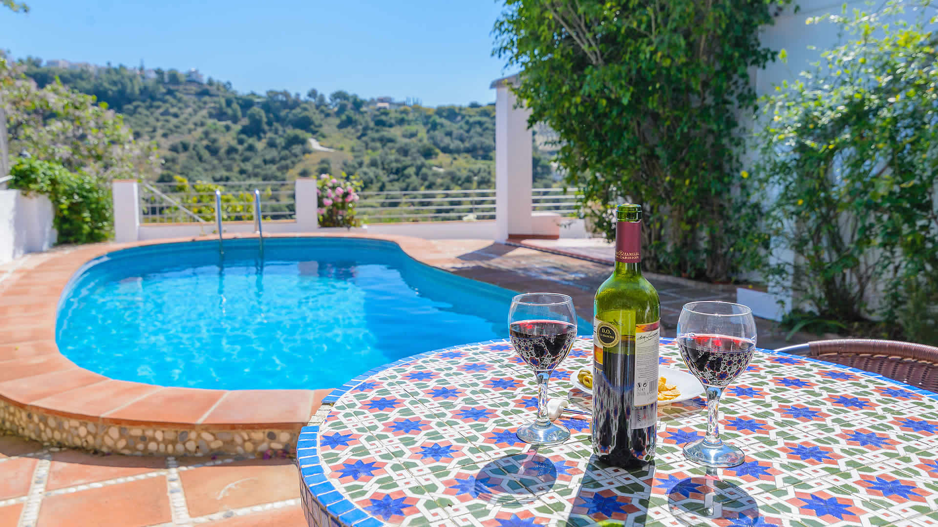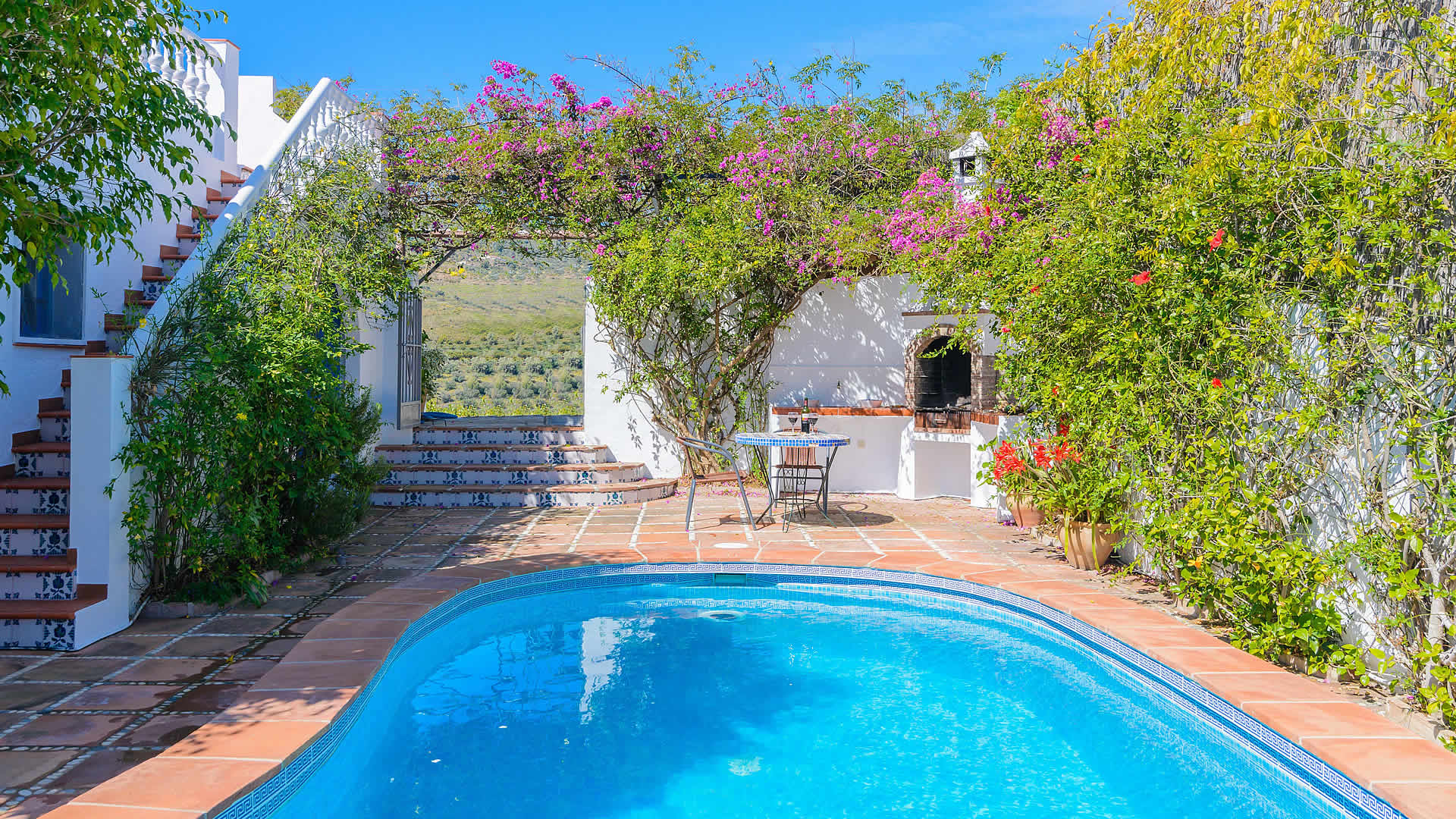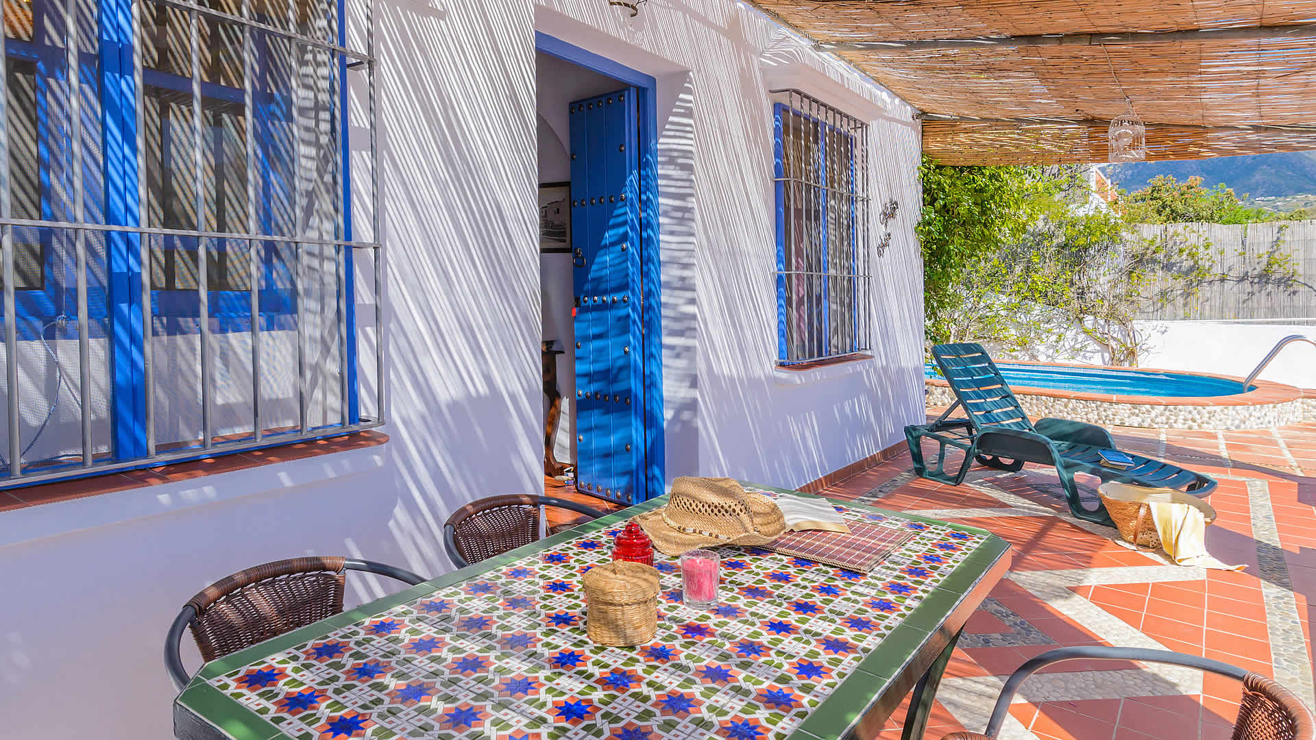 Pequeño y precioso cortijo, completamente restaurado y situado en el campo en los alrededores de Frigiliana (3 kms). Aquí pasará unas vacaciones pacíficas y se puede disfrutar las comidas en el exterior con maravillosas vistas panorámicas sobre el campo, el pueblo hasta llegar al mar. Tiene un bonito porche, cubierto con una parra. Hay barbacoa. Hay una atractiva piscina de 3,5m x 7,5m, en forma de riñon. Por su ubicación en la Axarquía, esta casa es un excelente punto de partida para visitas a las cuevas de Nerja, el Alhambra de Granada o el museo Picasso en Málaga.