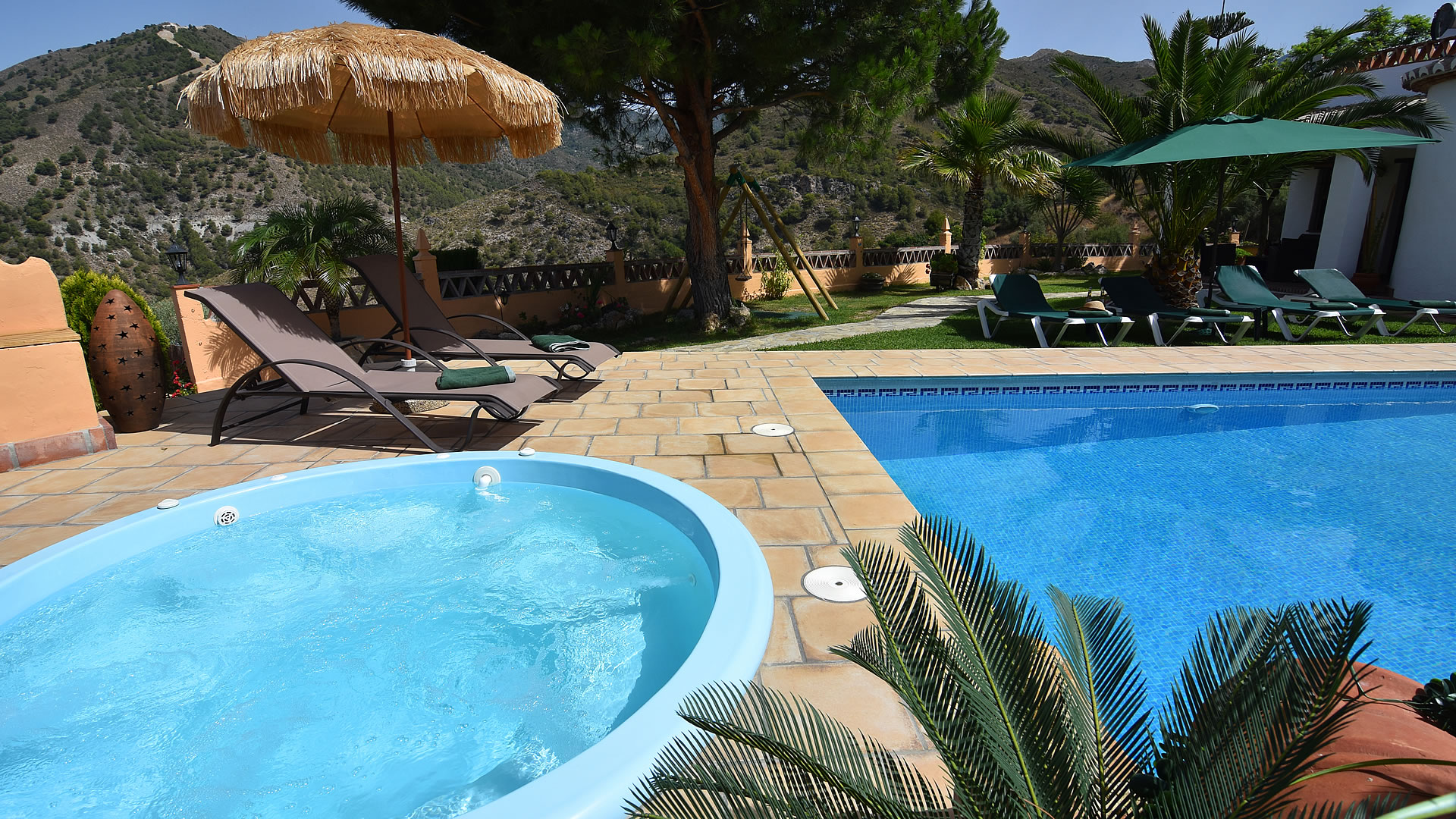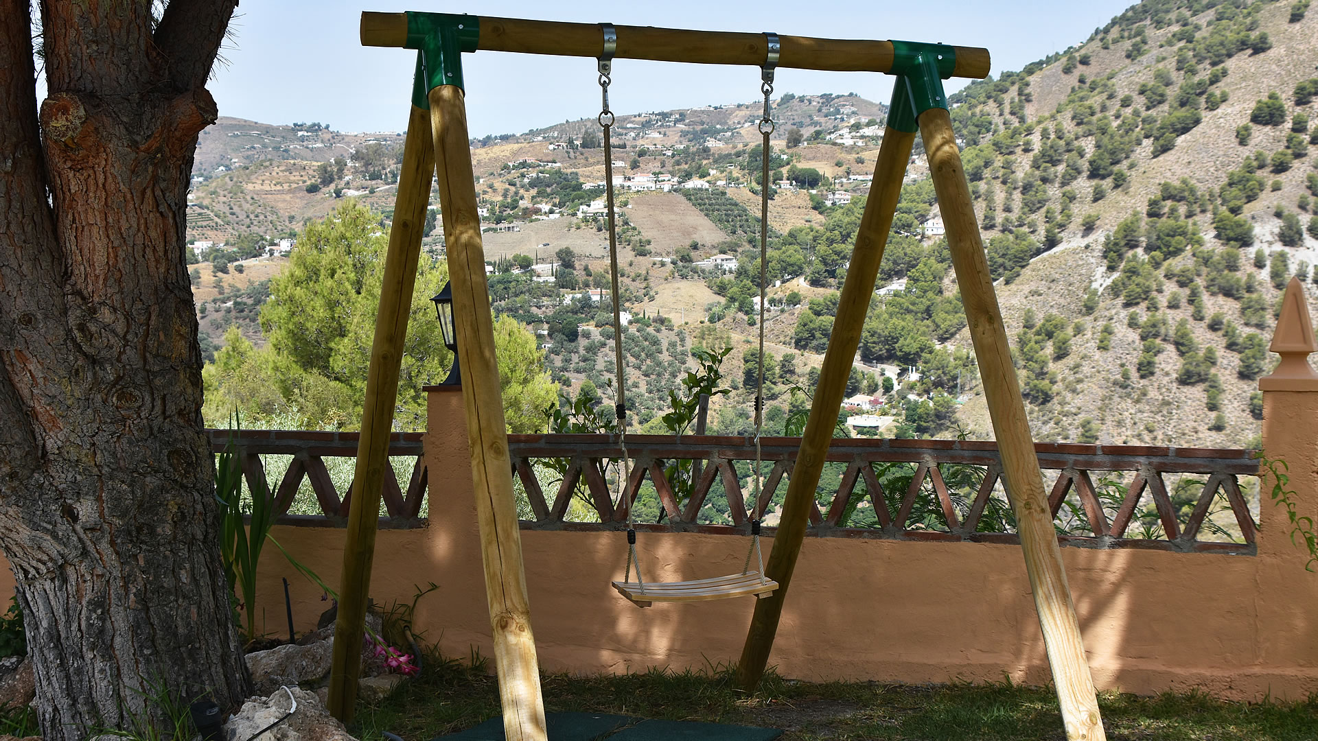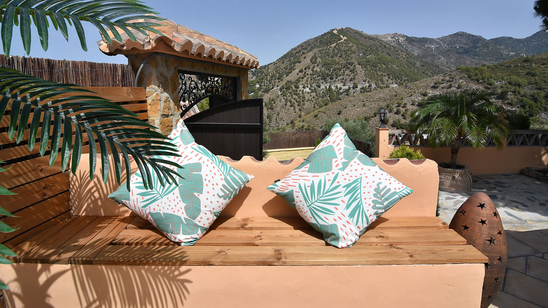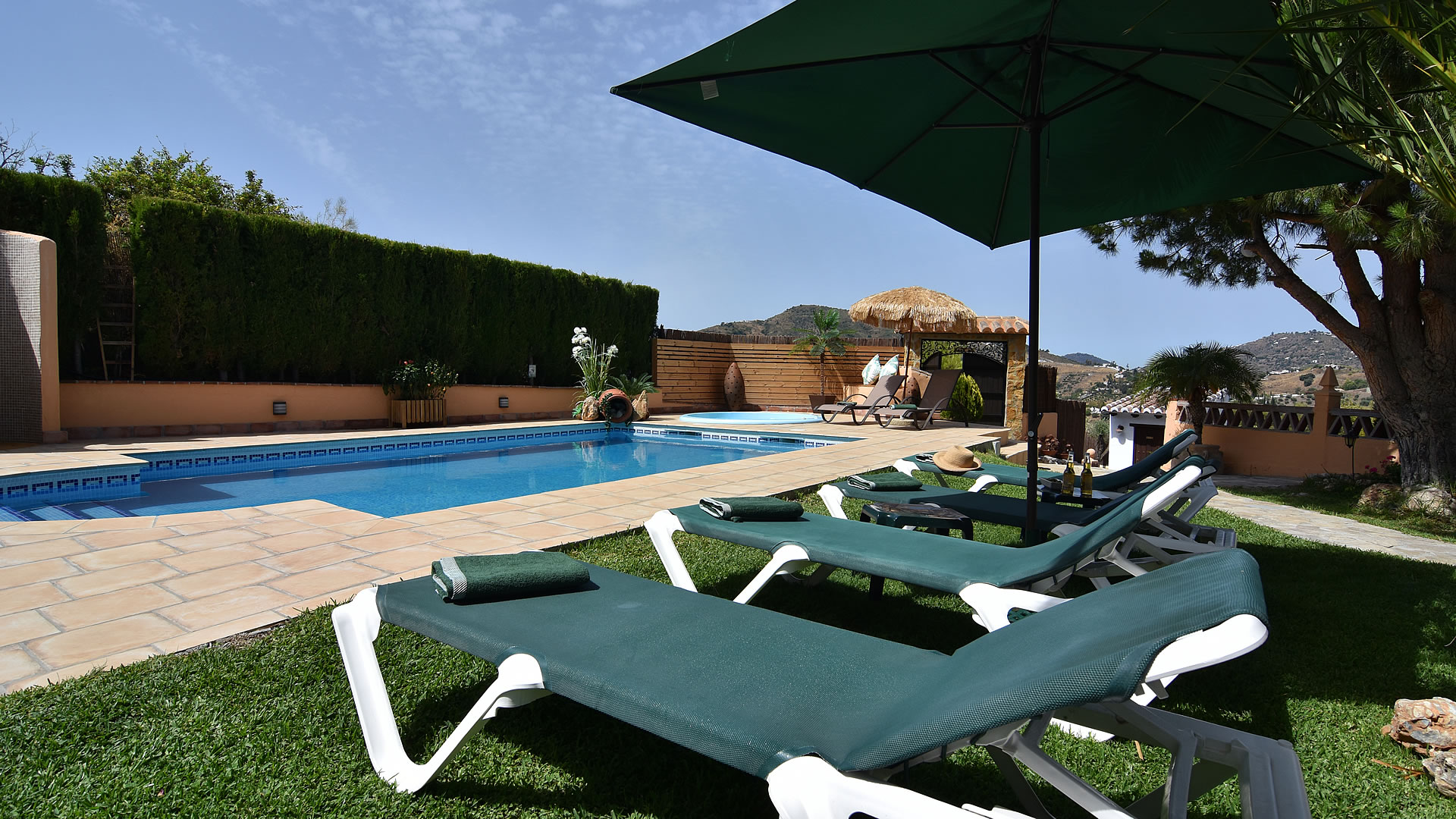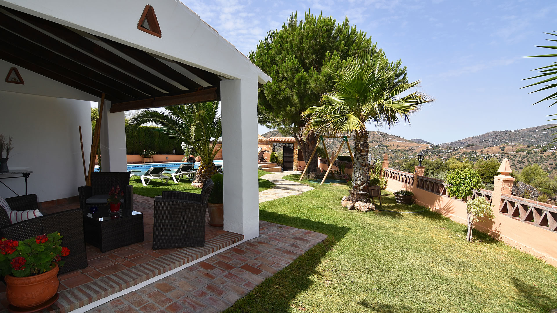 Am Ende einer befestigten LandstraÃe, 5 Kilometer nordwestlich von Frigiliana, liegt dieses prächtige, freistehende Ferienhaus, das alles bietet, was man sich für herrliche Sommerferien nur wünschen kann. Eine ruhige LandstraÃe führt zum Haus hin, welches Sie durch ein privates Tor und über eine Rasenfläche mit Schwimmbecken (7 Meter lang, 4 Meter breit; 1,20 Meter tief) erreichen. Rechts befindet sich eine schattige AuÃenküche mit Spülstein, Kühlschrank, Grill, Arbeitsflächen, Hockern etc. - der perfekte Ort um drauÃen zu speisen! Links vom Haus und etwas zurückversetzt an der Rückseite erwartet Sie eine Pergola mit Sonnenterrasse und Tischtennisplatte sowie noch mehr Garten. Hoch auf einem Hügel gelegen, genieÃen Sie vom Haus aus die beeindruckende Aussicht bis hin nach Competa, Torrox und die umliegende andalusische Landschaft. Das Domizil ist übrigens zugleich ein günstiger Ausgangspunkt, um Andalusien zu entdecken: hierzu bieten sich z.B. die nahgelegenen WeiÃen Dörfer oder die Malaga-SüÃweinroute an! Sie möchten lieber zuhause bleiben? Entspannen Sie dann doch mit einem Glas Sangria in einer der AuÃen-Sitzgelegenheiten. Oder wie wären herrlich-ruhige Stunden mit einem Buch in einem der komfortablen Liegestühle am Rande des Schwimmbeckens? Lust auf eine kleine Abwechslung? Die Umgebung ist ein Paradies für Wanderer; besonders ans Herz gelegt sei Ihnen eine 30 - 40 minütige Wanderung zur Siedlung Acebuchal, einem Dörfchen mit interessanter Geschichte. Sie bevorzugen einen Tag am Mittelmeer? Nach nur 15 - 20 Autominuten stehen Ihnen verschiedene wunderbare Strände Nerjas zur Auswahl! Das Ferienhaus verfügt über zwei Privatparkplätze. Der zum Haus hinführende Weg, über die LandstraÃe, ist ein bisschen schmal, aber keinesfalls gefährlich.