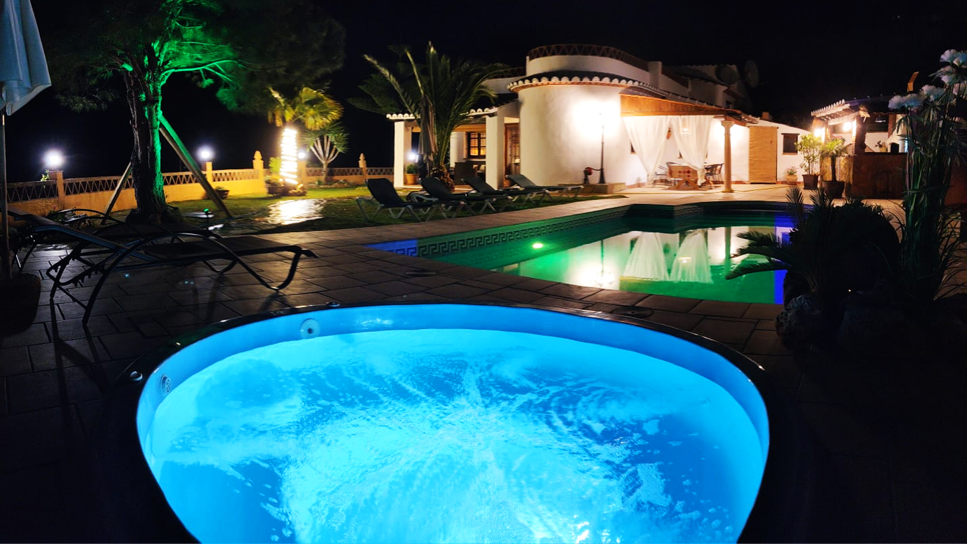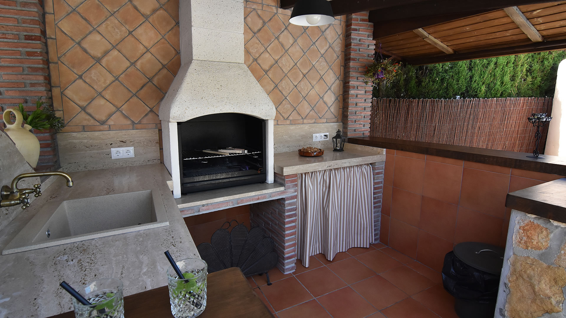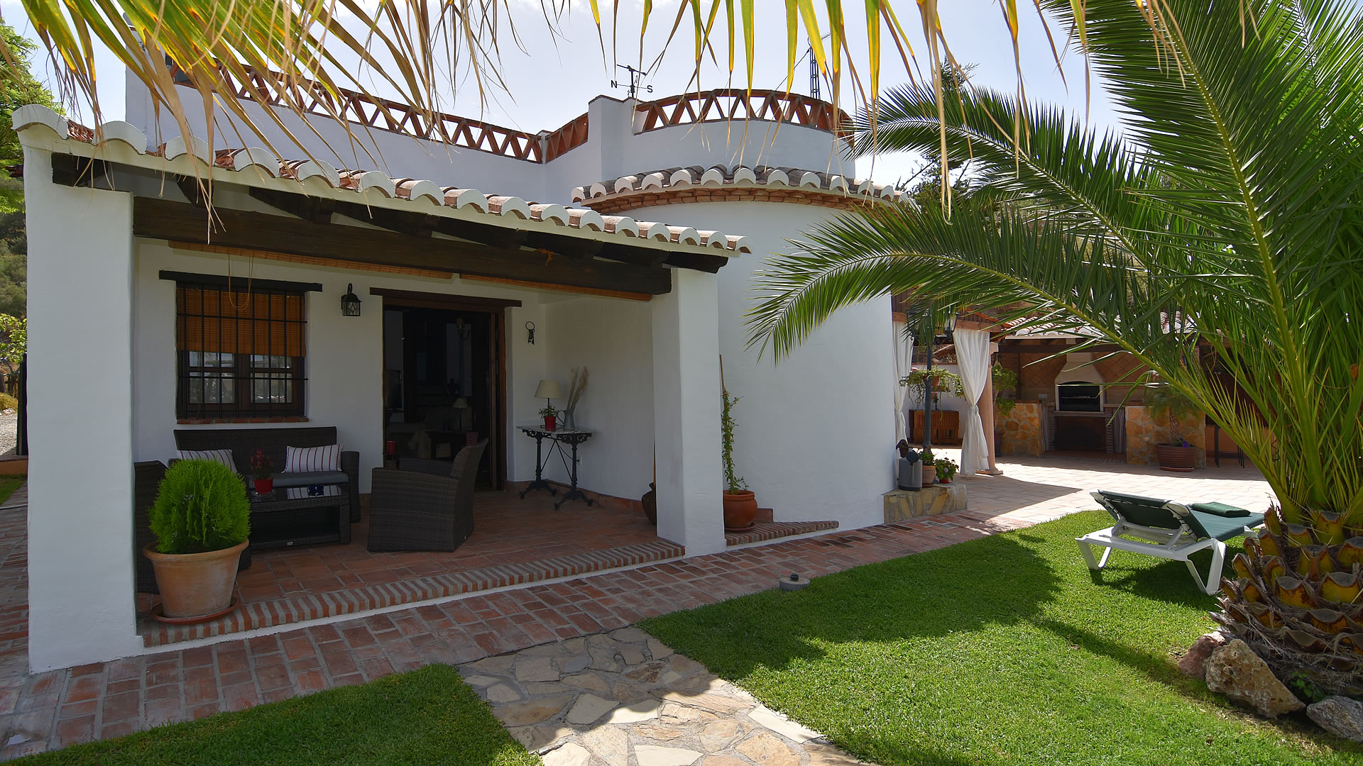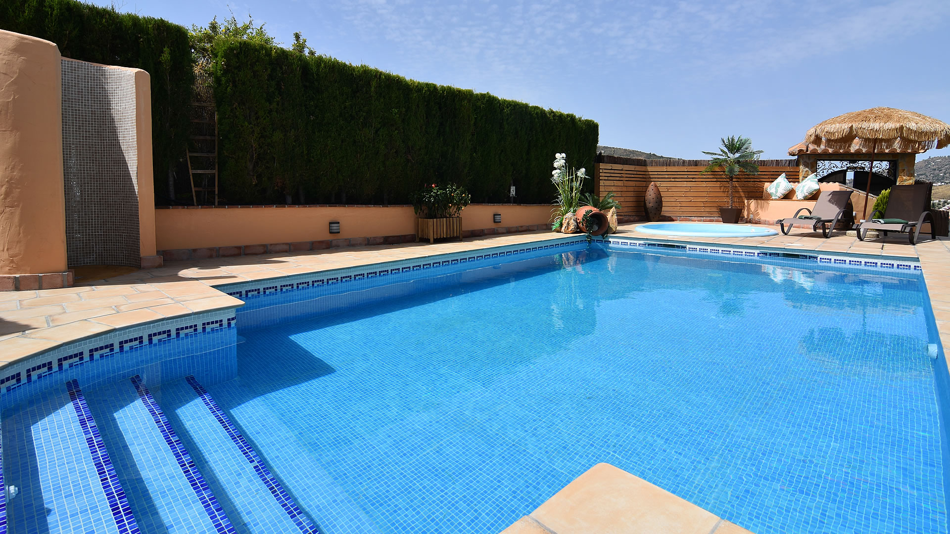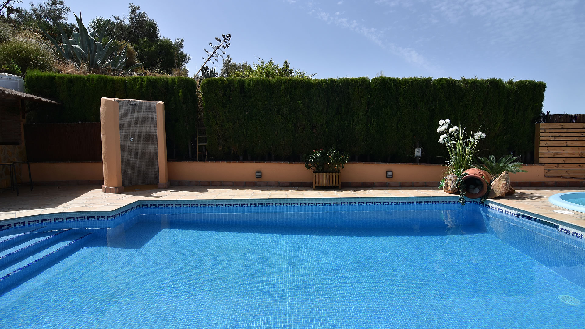 Am Ende einer befestigten LandstraÃe, 5 Kilometer nordwestlich von Frigiliana, liegt dieses prächtige, freistehende Ferienhaus, das alles bietet, was man sich für herrliche Sommerferien nur wünschen kann. Eine ruhige LandstraÃe führt zum Haus hin, welches Sie durch ein privates Tor und über eine Rasenfläche mit Schwimmbecken (7 Meter lang, 4 Meter breit; 1,20 Meter tief) erreichen. Rechts befindet sich eine schattige AuÃenküche mit Spülstein, Kühlschrank, Grill, Arbeitsflächen, Hockern etc. - der perfekte Ort um drauÃen zu speisen! Links vom Haus und etwas zurückversetzt an der Rückseite erwartet Sie eine Pergola mit Sonnenterrasse und Tischtennisplatte sowie noch mehr Garten. Hoch auf einem Hügel gelegen, genieÃen Sie vom Haus aus die beeindruckende Aussicht bis hin nach Competa, Torrox und die umliegende andalusische Landschaft. Das Domizil ist übrigens zugleich ein günstiger Ausgangspunkt, um Andalusien zu entdecken: hierzu bieten sich z.B. die nahgelegenen WeiÃen Dörfer oder die Malaga-SüÃweinroute an! Sie möchten lieber zuhause bleiben? Entspannen Sie dann doch mit einem Glas Sangria in einer der AuÃen-Sitzgelegenheiten. Oder wie wären herrlich-ruhige Stunden mit einem Buch in einem der komfortablen Liegestühle am Rande des Schwimmbeckens? Lust auf eine kleine Abwechslung? Die Umgebung ist ein Paradies für Wanderer; besonders ans Herz gelegt sei Ihnen eine 30 - 40 minütige Wanderung zur Siedlung Acebuchal, einem Dörfchen mit interessanter Geschichte. Sie bevorzugen einen Tag am Mittelmeer? Nach nur 15 - 20 Autominuten stehen Ihnen verschiedene wunderbare Strände Nerjas zur Auswahl! Das Ferienhaus verfügt über zwei Privatparkplätze. Der zum Haus hinführende Weg, über die LandstraÃe, ist ein bisschen schmal, aber keinesfalls gefährlich.