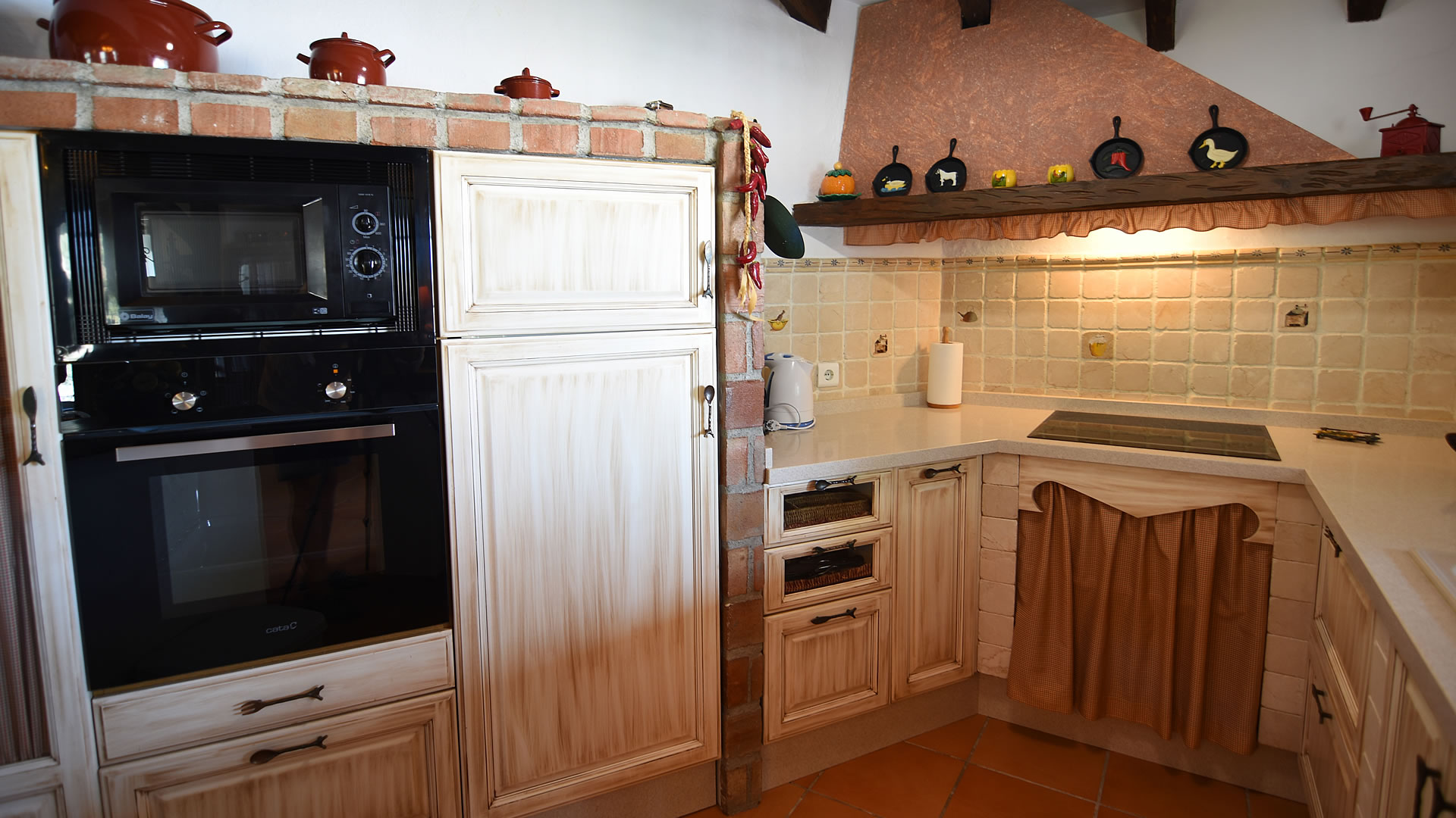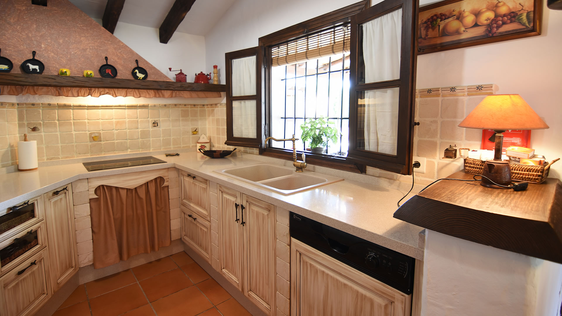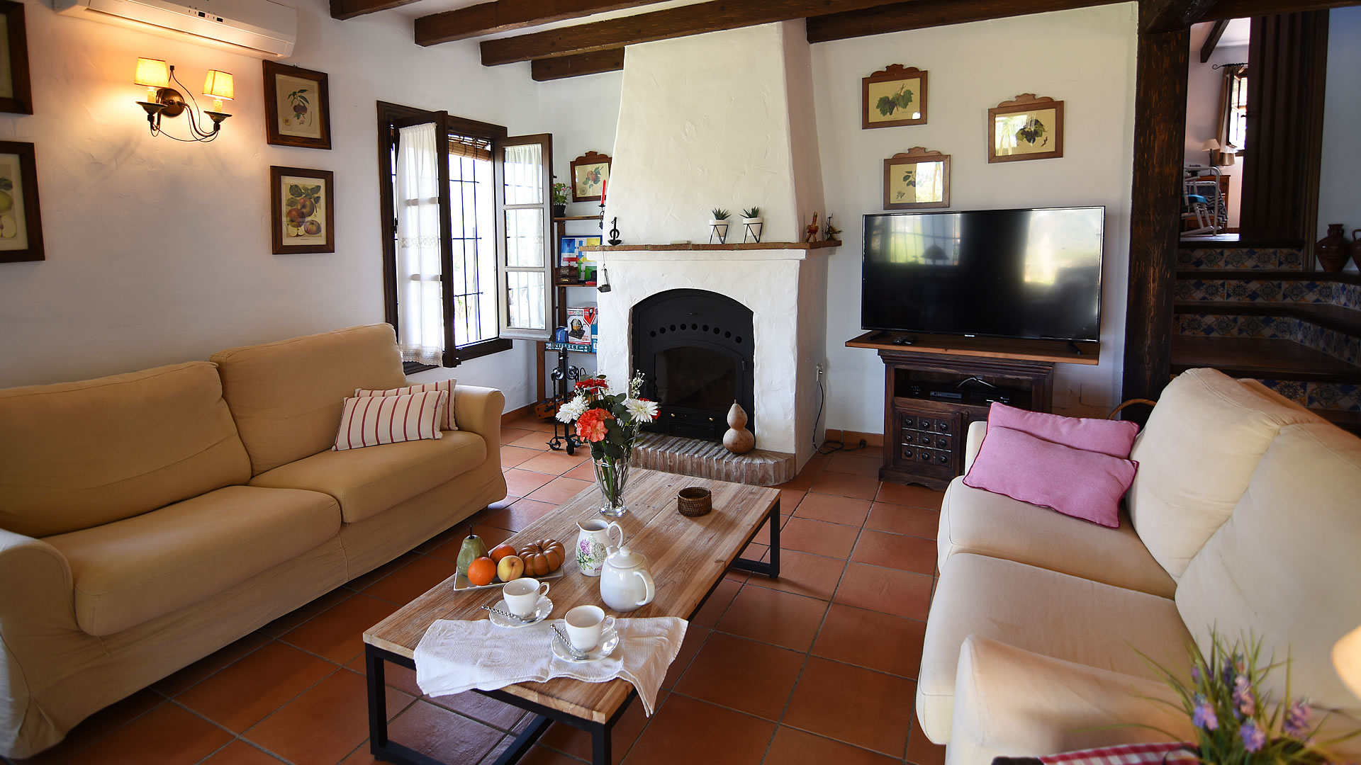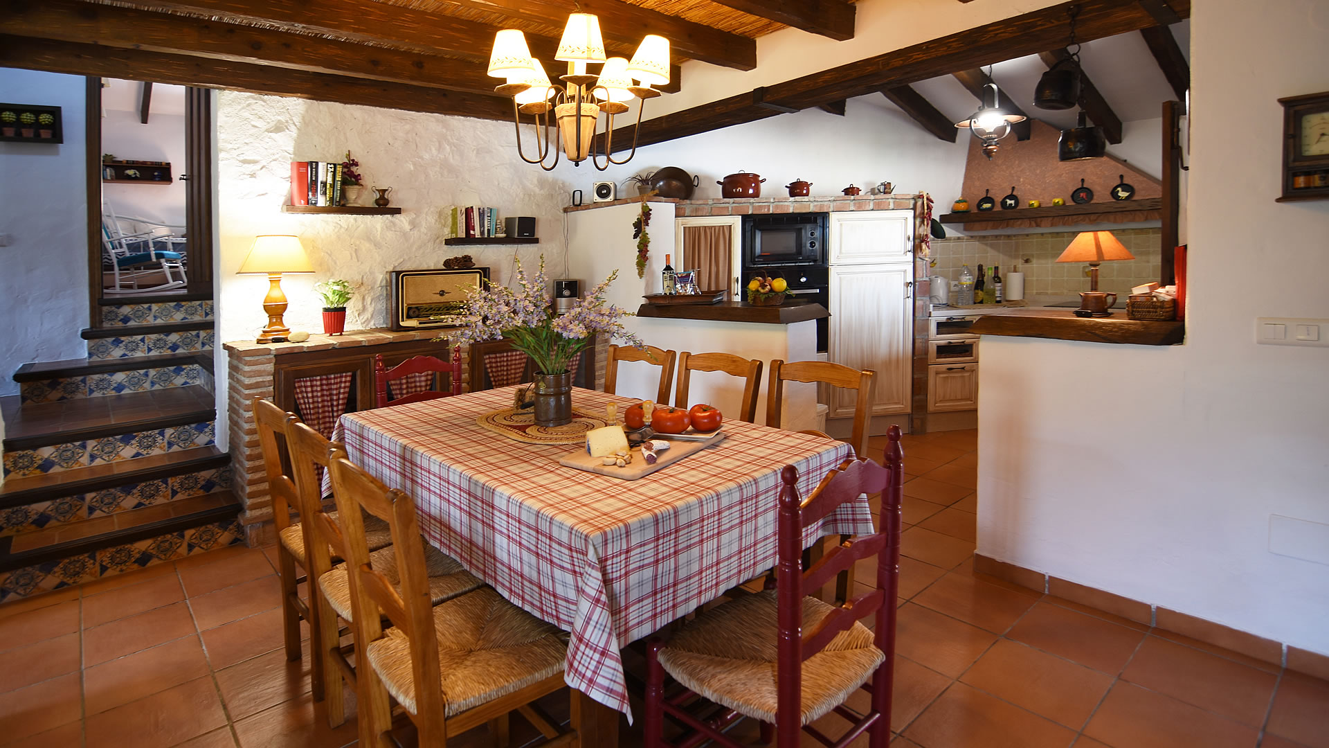 Treten Sie einfach ein! Sie werden sich hier gleich zuhause fühlen! Die Besitzer haben das Haus mit sehr viel Geschmack eingerichtet: im typisch spanischen, ländlichen Stil mit Fliesen aus der Region und hölzernen Deckenbalken. Durch die Eingangstür betreten Sie das geräumige Wohn-/Esszimmer mit Kachelofen und einer Sitzecke, in der zwei Dreisitzer einander gegenüber platziert sind. Es gibt einen Flachbildfernseher mit Satellitenempfang sowie eine Musikanlage. Die Essecke ist ein gemütliches Eckchen für 6 Personen, praktischerweise in der Nähe der Küche gelegen. Obwohl die Küche auf rustikale Weise eingerichtet ist, verfügt sie doch über jeglichen modernen Komfort wie ein Ceranfeld, Backofen, Mikrowelle, Kühl-/Gefrierschrank, Geschirrspüler und Waschmaschine. Es gibt drei Schlafzimmer: zwei mit je einem Doppelbett sowie ein Schlafzimmer für drei Personen mit einem Doppel- und einem Einzelbett. Ein gemeinsames Badezimmer sowie ein Duschraum vervollständigen dieses Ferienhaus zu einem komfortablen Aufenthaltsort. Es gibt eine Klimaanlage (kalt / warm) im Wohnzimmer und eine weitere auf dem Flur, die die 3 Schlafzimmer erfrischt / heitzt, wenn die Türen offen gelassen werden.Bitte beobachten Sie:- Die Preise beziehen sich auf 6 Personen. Für jede weitere Person werden 15 EUR pro Woche gilt für die 7. Person. - Das Haus verfügt über eine WIFI-Internetverbindung, die ohne Mehrkosten genutzt werden kann.