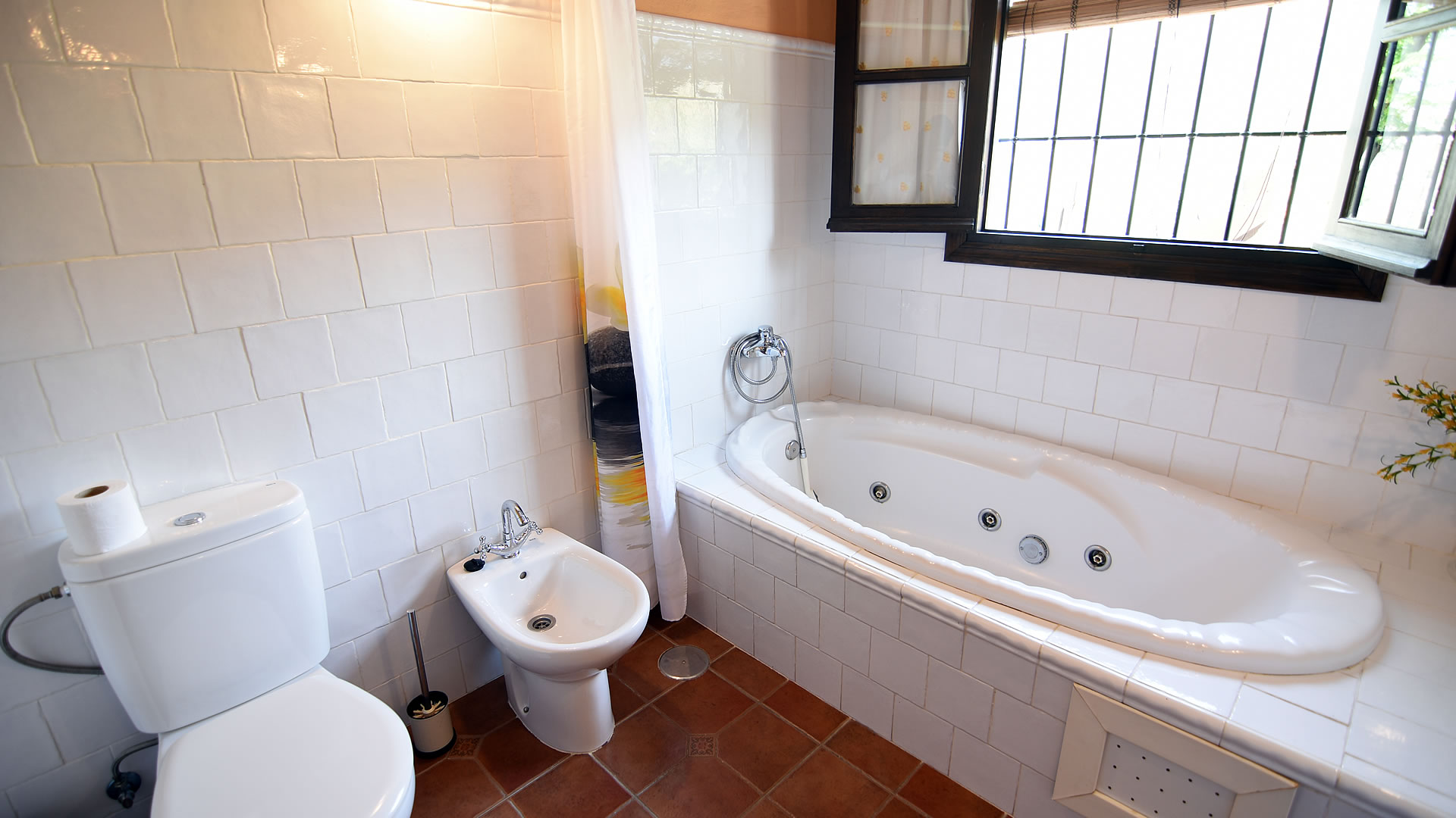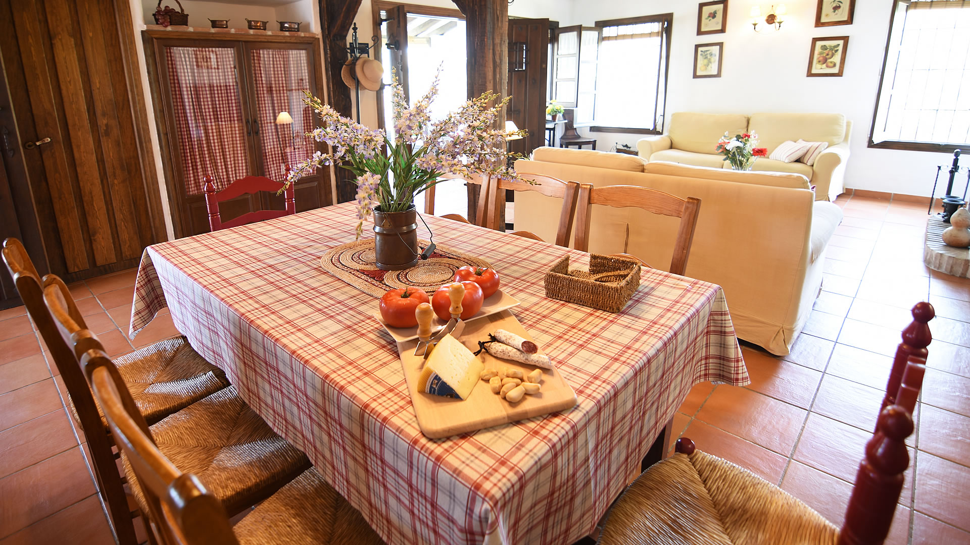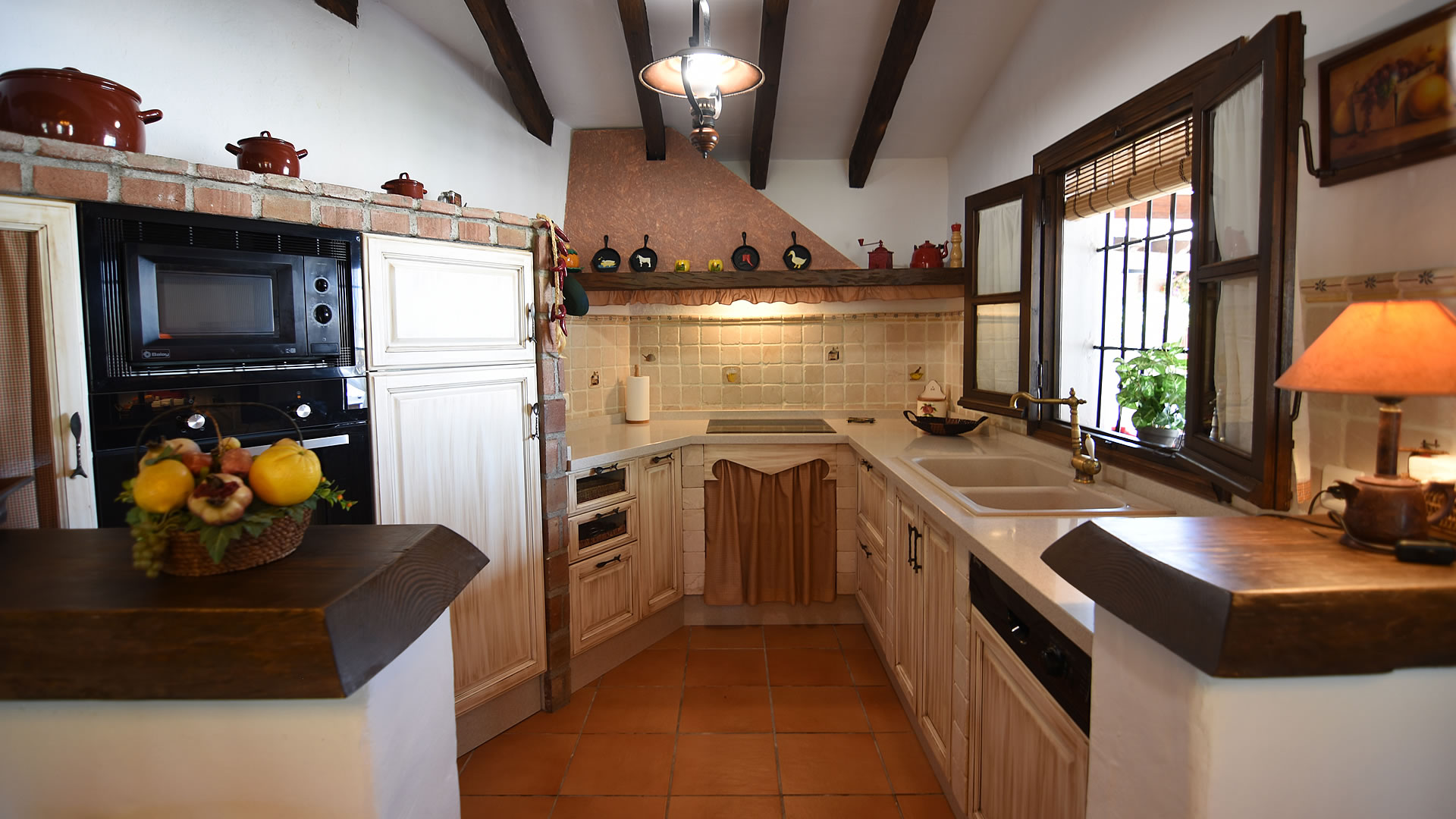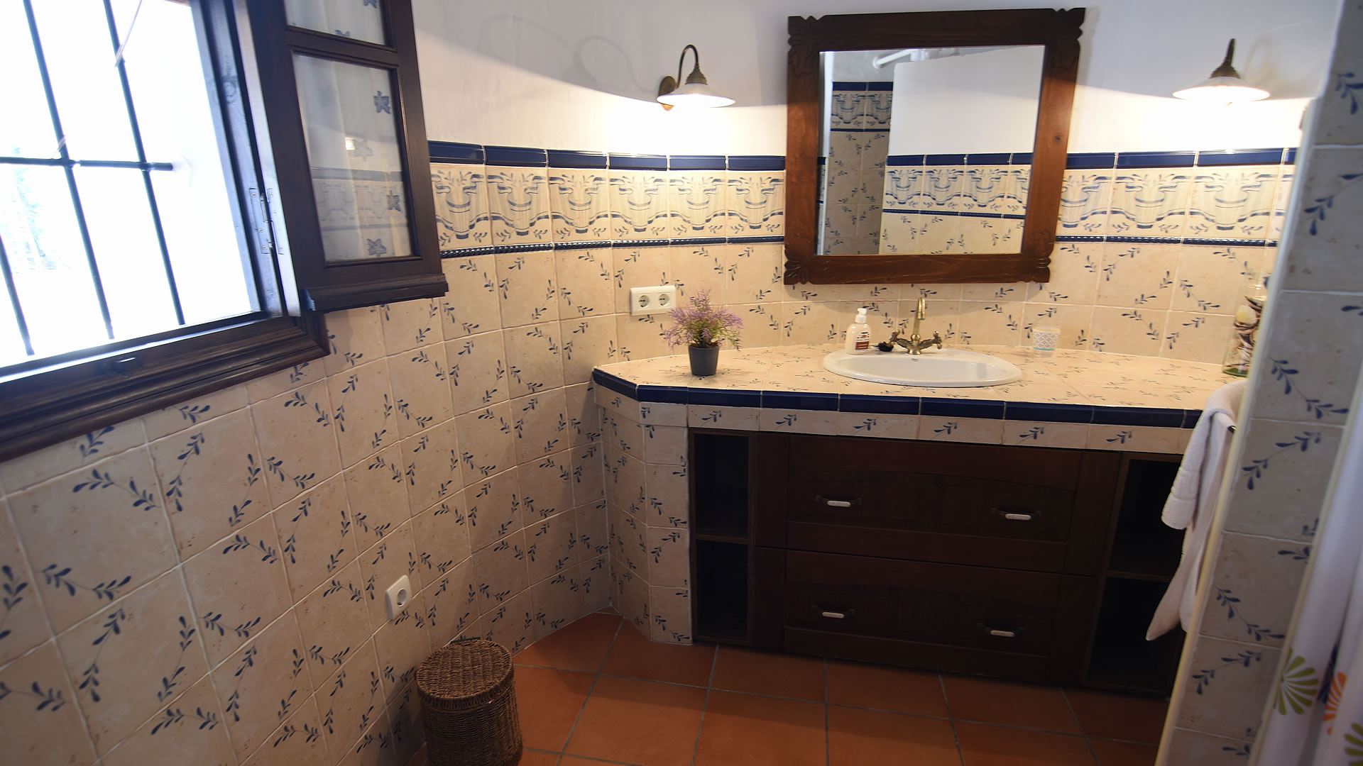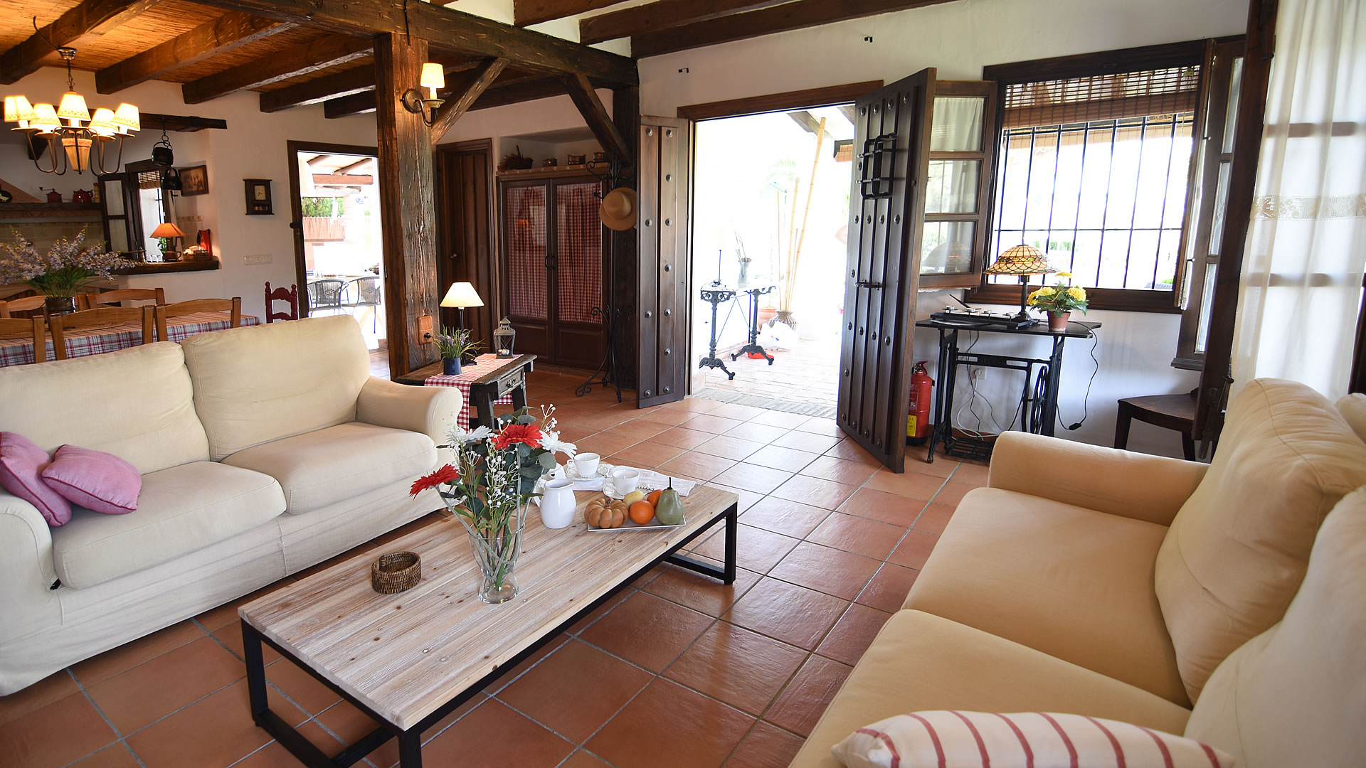 Treten Sie einfach ein! Sie werden sich hier gleich zuhause fühlen! Die Besitzer haben das Haus mit sehr viel Geschmack eingerichtet: im typisch spanischen, ländlichen Stil mit Fliesen aus der Region und hölzernen Deckenbalken. Durch die Eingangstür betreten Sie das geräumige Wohn-/Esszimmer mit Kachelofen und einer Sitzecke, in der zwei Dreisitzer einander gegenüber platziert sind. Es gibt einen Flachbildfernseher mit Satellitenempfang sowie eine Musikanlage. Die Essecke ist ein gemütliches Eckchen für 6 Personen, praktischerweise in der Nähe der Küche gelegen. Obwohl die Küche auf rustikale Weise eingerichtet ist, verfügt sie doch über jeglichen modernen Komfort wie ein Ceranfeld, Backofen, Mikrowelle, Kühl-/Gefrierschrank, Geschirrspüler und Waschmaschine. Es gibt drei Schlafzimmer: zwei mit je einem Doppelbett sowie ein Schlafzimmer für drei Personen mit einem Doppel- und einem Einzelbett. Ein gemeinsames Badezimmer sowie ein Duschraum vervollständigen dieses Ferienhaus zu einem komfortablen Aufenthaltsort. Es gibt eine Klimaanlage (kalt / warm) im Wohnzimmer und eine weitere auf dem Flur, die die 3 Schlafzimmer erfrischt / heitzt, wenn die Türen offen gelassen werden.Bitte beobachten Sie:- Die Preise beziehen sich auf 6 Personen. Für jede weitere Person werden 15 EUR pro Woche gilt für die 7. Person. - Das Haus verfügt über eine WIFI-Internetverbindung, die ohne Mehrkosten genutzt werden kann.