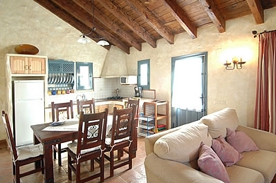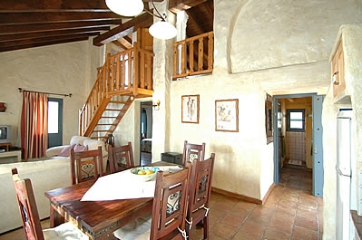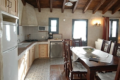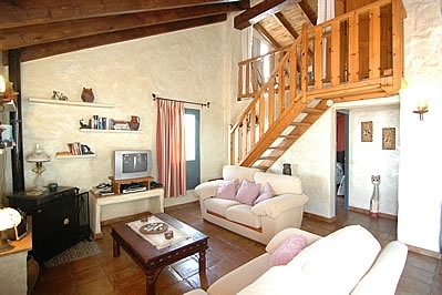 Dit comfortabel en smaakvol ingerichte landhuis ademt een warme sfeer met haar balkenplafonds en het mooie rustieke meubilair. Via de voordeur komt u in een ruime zit/eetkamer met houtkachel, satelliettelevisie, Dvd-speler, muziekinstallatie en airconditioning. De inbouw open keuken is goed uitgerust met een 4-pits gasstel, magnetron, koelkast/vriezer en een vaatwasser. De wasmachine staat buiten de keuken. De twee romantisch ingerichte slaapkamers met aparte bedden zijn voorzien van inbouwkasten en een traditioneel gedecoreerde doucheruimte met wastafel en toilet. Via een open houten trap in de zitkamer komt u in de derde (galerij)slaapkamer met een king size tweepersoonsbed en met eigen badkamer, compleet met wastafel en toilet. N.B: Er is een WiFi internetverbinding beschikbaar, met toeslag afhankelijk van gebruik.