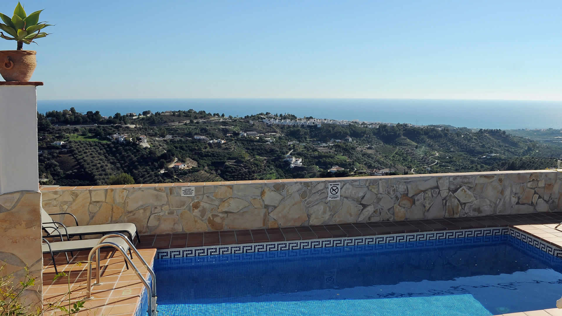 The town of Frigiliana, with numerous restaurants, bars and craft shops, is within a short 5-minute drive, yet you also have all the joys of living in tranquility with your own pool (7x3,5 m) available all year round and a splendid sunny terrace with sun loungers. The cottage is surrounded by terraces offering magnificent views in all directions, the most impressive out to the sea from the front veranda overlooking the pool. Next to the house is a barbecue area including a natural stone-made oven, the type used by the locals to prepare the typical cochenillo segoviano (sucking pig). Of course you can also use it to make your own favourite pizzas, and you can enjoy them alfresco in the dining corner next to the barbecue area. If you so desire to dip into the ocean, the beaches of Nerja are only 7.5 km away. You can also enjoy the excellent paellas at Burriana beach.