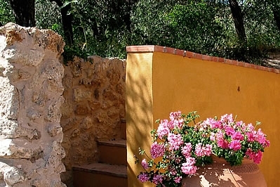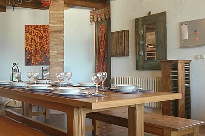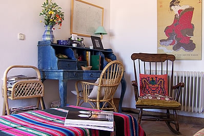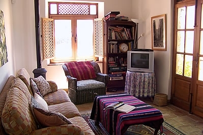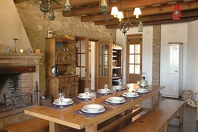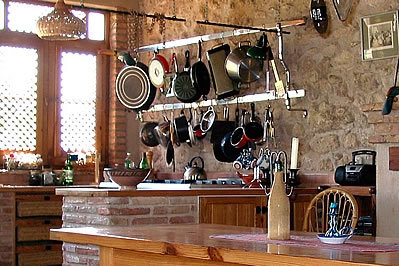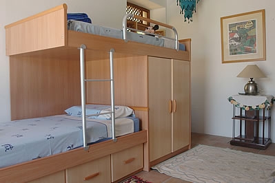 Très bien aménagée, cette villa offre un refuge très agréable. Le hall d'entrée au rez-de-chaussée mène au cœur de la maison: une grande cuisine/salle à manger avec une longue table de réfectoire et des bancs, un évier en marbre, des plans de travail de pins, et un grand réfrigérateur et une cuisinière commerciale. Il y a une chambre à 2 lits 1 personne (0,90 m 1,90 m) et une chambre avec lits superposés, plus approprié pour les enfants. Également au rez-de-chaussée: une salle de séjour, un petit appareil de musculation et une salle de bain avec douche dans la baignoire et WC. Premier étage: chambre principale avec salle de bain en suite (baignoire et WC), 2 chambres à 1 lit 2 personnes avec balcon, salle de bain avec douche dans la baignoire et WC, et une grande terrasse. Un escalier mène du rez-de-chaussée à un salon circulaire avec une cheminée ouverte au centre et des portes donnant sur une terrasse. Autres caractéristiques: chauffage central, lecteur CD et téléphone avec compteur.