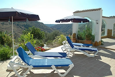 2 semaines en juillet. L'accueil était très bien mais comme nous ne parlons pas espagnol et que les responsables de la maison parlaient à peine anglais, nous n'avons pas eu beaucoup de renseignements techniques. Nous avons appris par nous même à connaître le système d'alimentation en énergie et ses contraintes mais rien de grave. La maison n'est plus neuve et le ménage aurait pu être mieux fait mais rien de grave non plus. L'équipement est complet, les draps et serviettes sont impeccables, la maison est spacieuse et la piscine est de bonne taille. Il faut savoir que la maison est située au bout d'un chemin de terre et de pierres plus que chaotique et avec des pentes bien raides mais c'est le prix à payer pour savourer une tranquillité et un spectacle magnifiques et puis notre gros monospace a tenu le choc. Nous avons vu des gipaedes (rapaces) tous les jours et même une leçon de vol donné à 7 jeunes par les parents tout près. Très belles ballades autour et Grenade ou Cordoue possible.