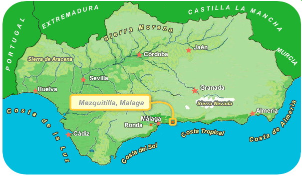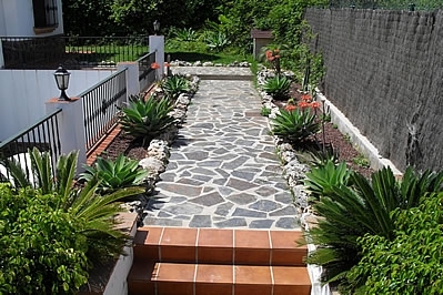 La villa está situada en las afueras de Mezquitilla, un pequeño pueblo de pescadores a sólo 13 km de la animada localidad de Nerja y a 40 minutos en coche de Málaga en la Costa del Sol, por lo que disfruta de una localización ideal para aquellos y aquellas que desean explorar AndalucÃa. La casa está a sólo 500 m de la playa, aunque la primera parte del camino es un poco empinada y por lo tanto menos ideal para hacerse andando. Hay una gran variedad de playas en las cercanÃas, todas con diferentes caracterÃsticas y un gran número de excelentes restaurantes. Para los más pequeños, muchas playas disponen de una zona de juego infantil y algunas incluso de mesas de ping-pong! El parque acuático de Torre del Mar está sólo 7 minutos en coche. Hay numerosas tiendas y mercados cercanos, incluyendo un centro comercial en Vélez (también a 7 minutos). El jardÃn de la villa se encuentra en dos niveles: en la planta baja tenemos el césped y una terraza adyacente a la sala de estar, el lugar ideal para cenar al aire libre; en un nivel inferior, se encuentra la piscina privada (8x4 m), barbacoa, tumbonas y suficiente espacio para que los niños jueguen.