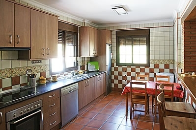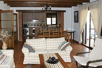 Esta villa puede alojar hasta 8 personas en 3 habitaciones y ofrece un alojamiento espacioso (150m2). Todas las habitaciones están en la planta baja excepto el dormitorio principal que se sitúa en el primer piso. La villa dispone de una cómoda sala de estar / comedor con puertas que se abren a una terraza equipada para comer al aire libre. El salón tiene dos cómodos sofás, TV vÃa satélite (en su mayorÃa con canales españoles y franceses) y un reproductor de CD y DVD. La cocina es también muy amplia y está separada del salón por una barra de desayuno. Está bien equipada con vitrocerámica de 4 fuegos, horno eléctrico, microondas, lavavajillas, nevera / congelador y lavadora. Hay 2 dormitorios con cama de matrimonio y 1 dormitorio para 3 personas con posibilidad para acomodar a una 4ª persona en un sofá cama, por lo que es una villa donde pueden dormir ocho personas cómodamente. Dispone de un cuarto de ducha y un cuarto de baño completo. El dormitorio principal tiene aire acondicionado.