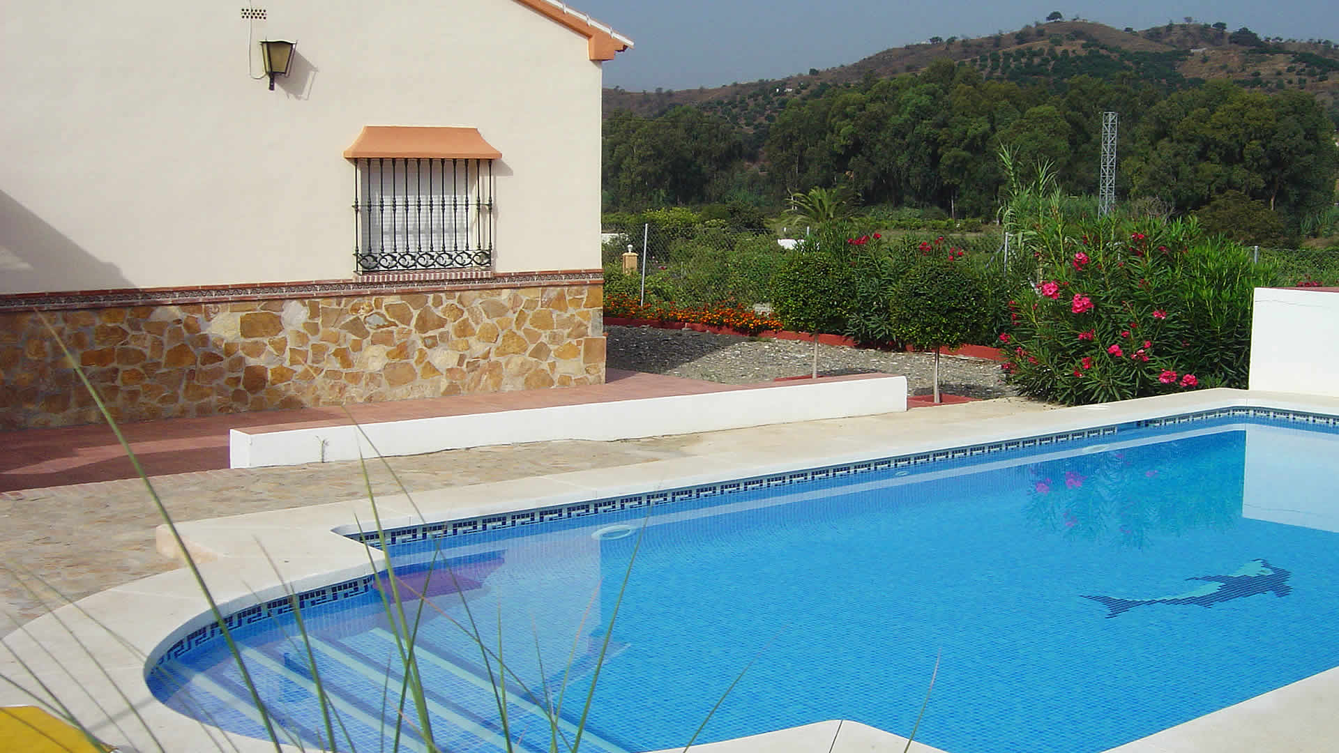 Cómoda casita de campo de reciente construcción, ubicada a 3 km de Coín, pueblo situado en el centro del valle del Guadalhorce, famoso por el cultivo de todo tipo de frutas. Junto a la casa hay un maravilloso porche con barbacoa y una huerta con jóvenes naranjos. Gran piscina (4 x 8 mts) con 4 hamacas.