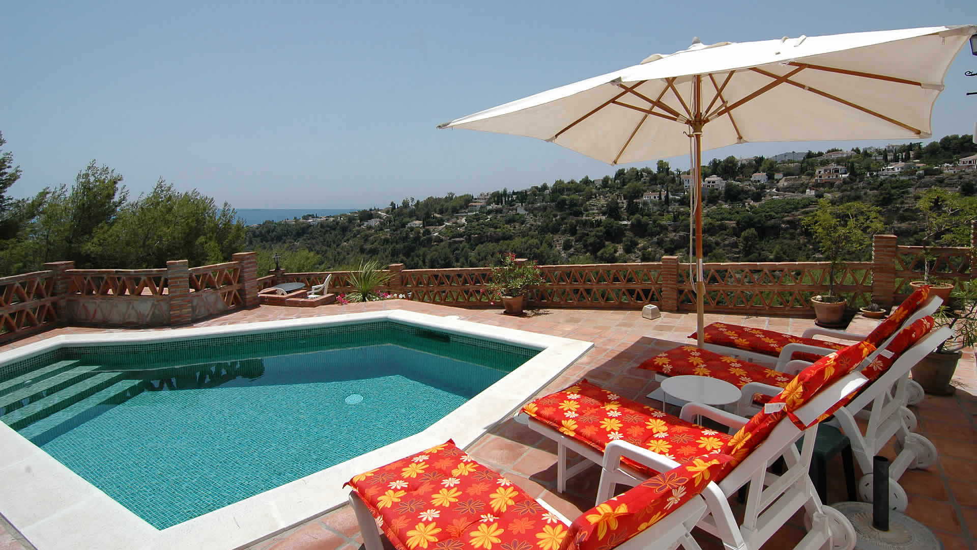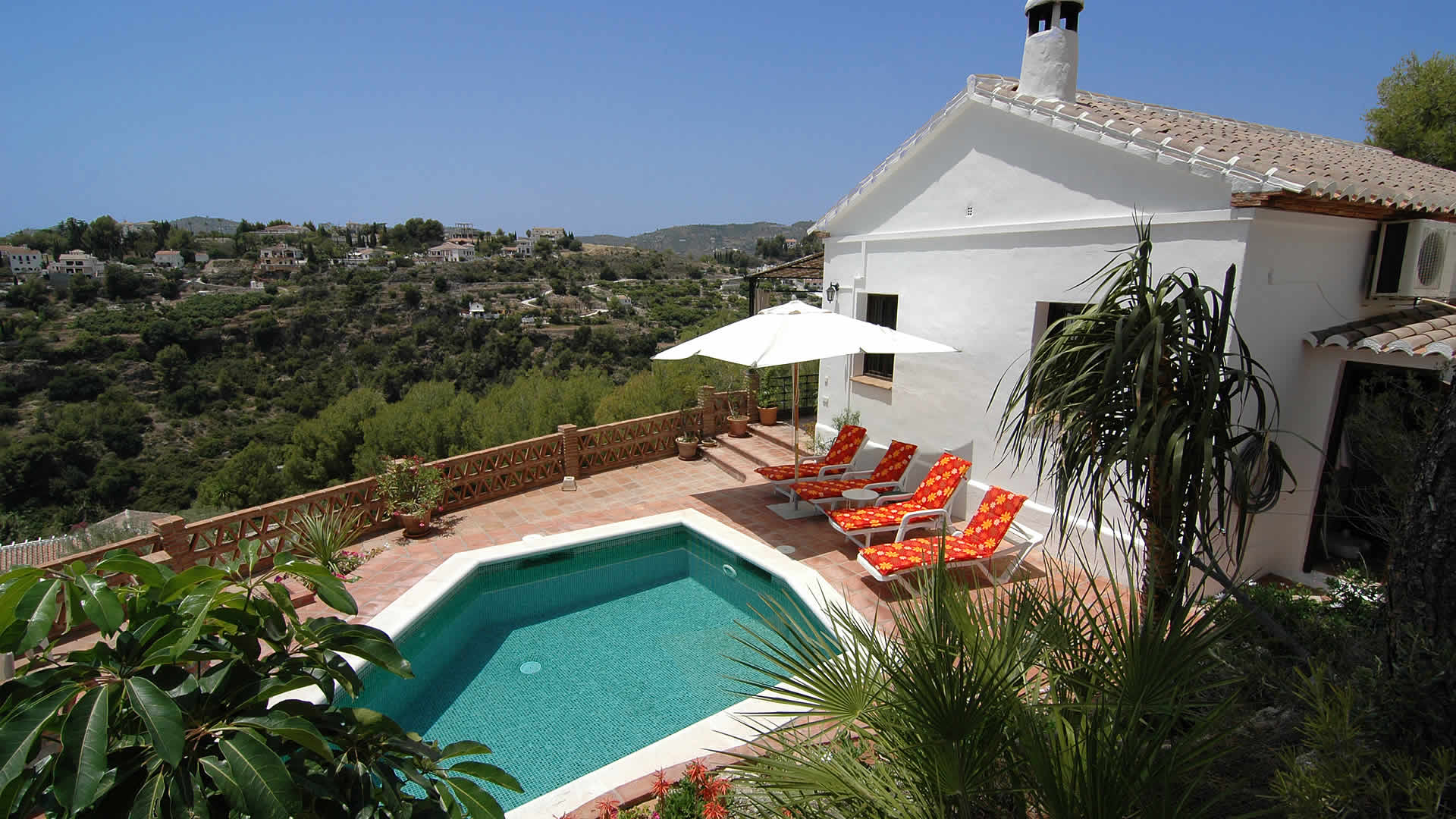 The lovely owners, Javier and Rosario, rightfully pride themselves on providing a home away from home for their guests and have great attention to detail. The cottage is reached by a very steep road, but once there, you won't want to move. Everything is provided for a comfortable, pleasant stay in the sun, just bring the vino and the lamb chops to throw on the BBQ. Relax on the terrace and gaze at the incredible views over the river valley across to the old village of Frigiliana and bask around the pool or enjoy the house with all it's comforts.