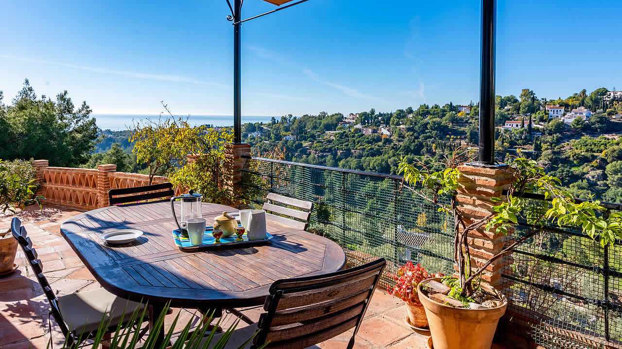 We really enjoyed our holiday at the cottage, it was just what we needed, totally tranquil and peaceful. The views from the villa are breath taking. We loved the position of the villa, away from it all in the Parque Natural, but within easy access to Nerja and Frigiliana. (we were lucky enough to see the eagles you mentioned swooping through the valley one afternoon! ). The cottage had everything we needed, it is beautifully furnished and the internet was a bonus for Kenny who canât be far from his laptop!!, the terrace and gardens were superb for that all important sunbathing! (We wish we were driving along that road to the villa tonight! as we are both very sad to be back in Edinburgh).