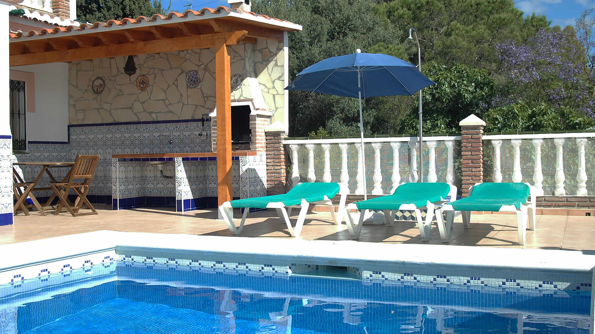Die Umgebung von Exotica hält Balance zwischen Stadt und Land, das beste zweier Welten! Vom Schwimmbecken aus blicken Sie über die Landschaft unter Ihnen mit Avocado-, Oliven- und Zitrusbäumen. In Richtung Süden liegt Nerja, mit dem Mittelmeer im Hintergrund. Alles in allem ist dies ein sehr günstig gelegenes Domizil: 5 Autominuten vom Zentrum von Nerja (2,2 Kilometer) und den Stränden entfernt. Sie möchten das Auto zu Hause lassen? 800 Meter entfernt erwartet Sie ein Supermarkt (Lidl) und das Restaurant des Hotels Almazara liegt ebenfalls auf Laufabstand (1,2 Kilometer). Der Zugang zum Haus erfolgt über die Rasenfläche, der Eingang befindet sich im ersten Stockwerk. Das Schwimmbecken von 7 x 3 Metern liegt auf ebenerdigem Niveau und ist umgeben von einer groÃen Terrasse mit Sonne UND Schatten. Liegestühle, Gartenmöbel und ein Grill stehen für Sie bereit. Die überdachte Terrasse mit Panoramasicht auf der ersten Etage ist der allerbeste Platz um drauÃen zu essen!Bitte beobachten Sie: Pool Beleuchtung ist installiert, aber funktioniert nicht.