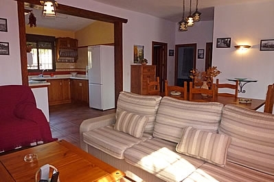 La villa tiene un interior muy cuidado y cómodo. Hay un salón comedor con aire acondicionado, tv por satélite y chimenea. La cocina es de tipo americana y dispone de vitro cerámica, microondas, lavavajillas, frigorÃfico y lavadora. Cuenta con 3 dormitorios (1 con cama de matrimonio y baño ensuite, otro con 2 camas individuales y el último con 1 cama individual) y 1 baño completo. Ambos baños tiene ducha, lavabo y wc. Sábanas y toallas incluidas (toallas playa no incluidas). Dispone de acceso a Internet Wifi.
