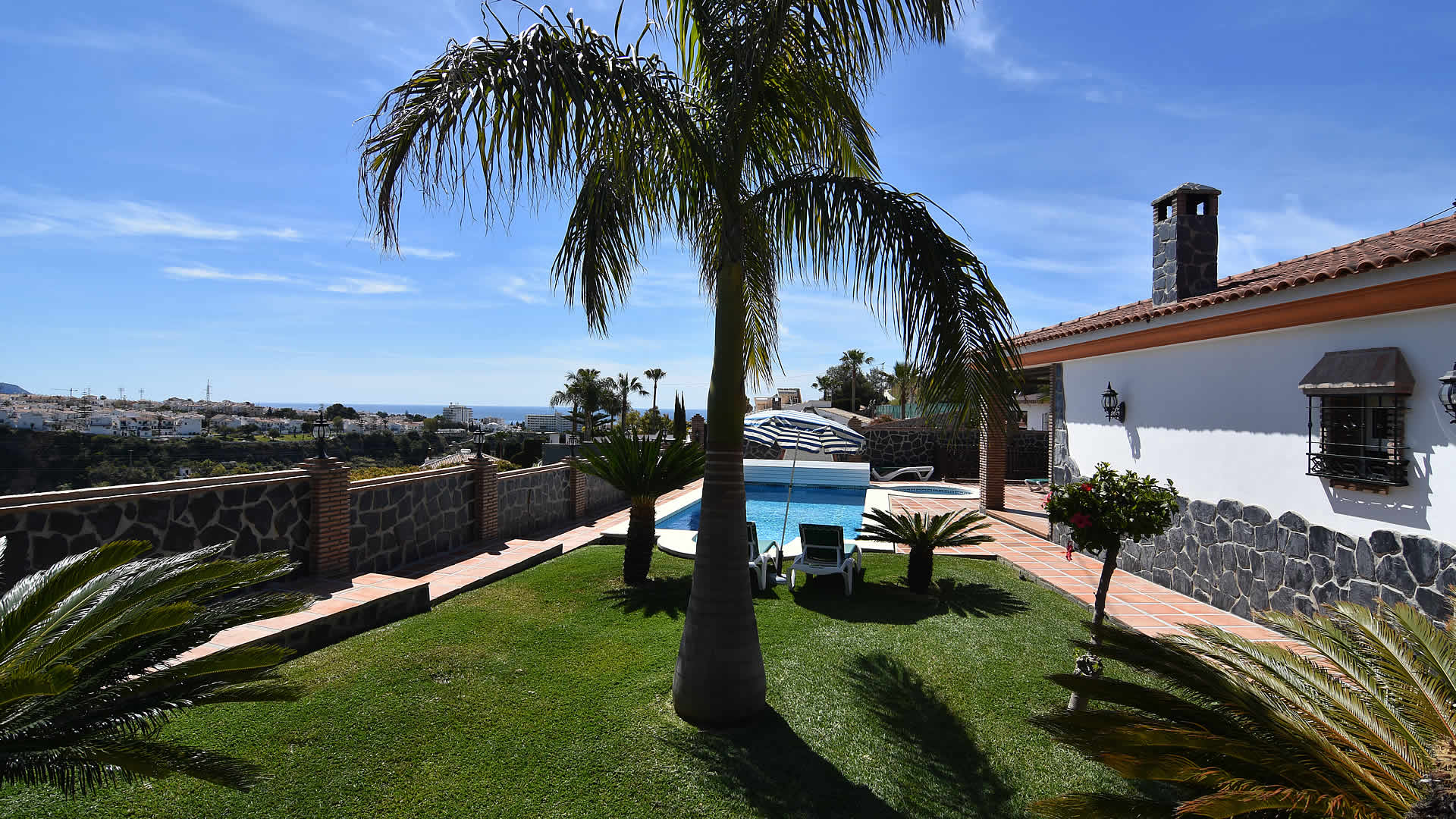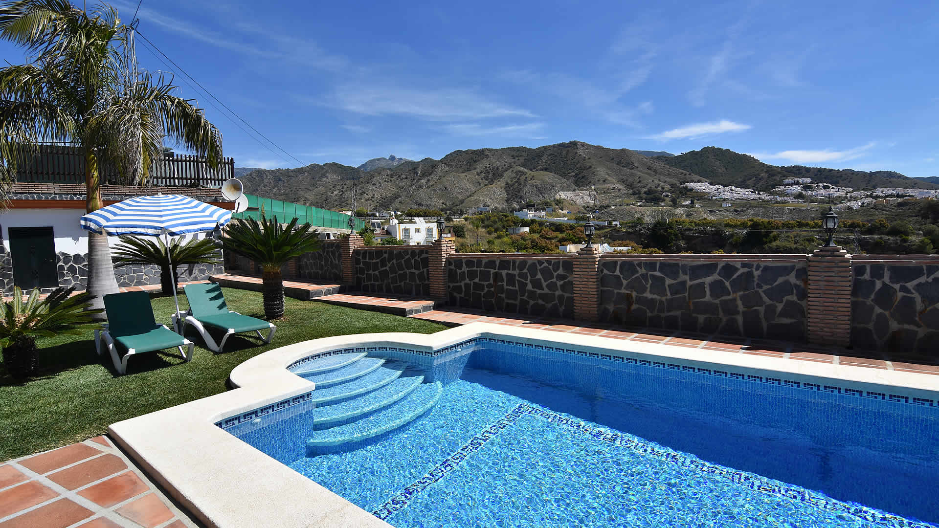 Estupenda villa de alta calidad y privacidad, con el jardÃn y su piscina completamente vallada. Hay césped y terrazas junto a la piscina de 8,5 por 4 metros. La piscina tiene una parte separada con baño de burbujas. La villa tiene una buena situación, cerca de Nerja (2 kms). Hay barbacoa y el porche es muy agradable, con mesa comedor para 6 personas. Hasta la casa hay 800 metros de carril sin asfaltar.
