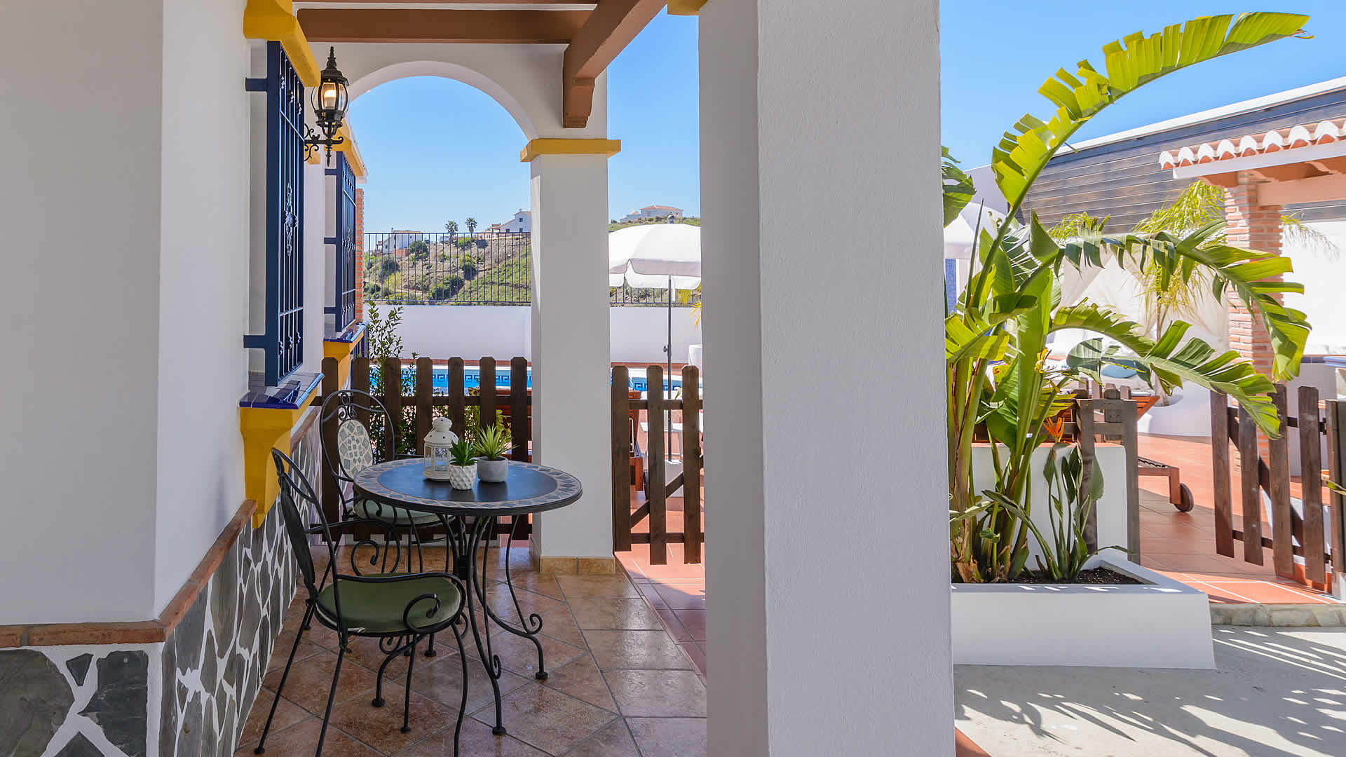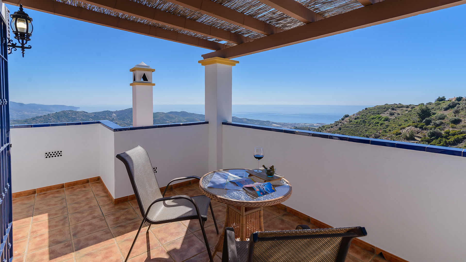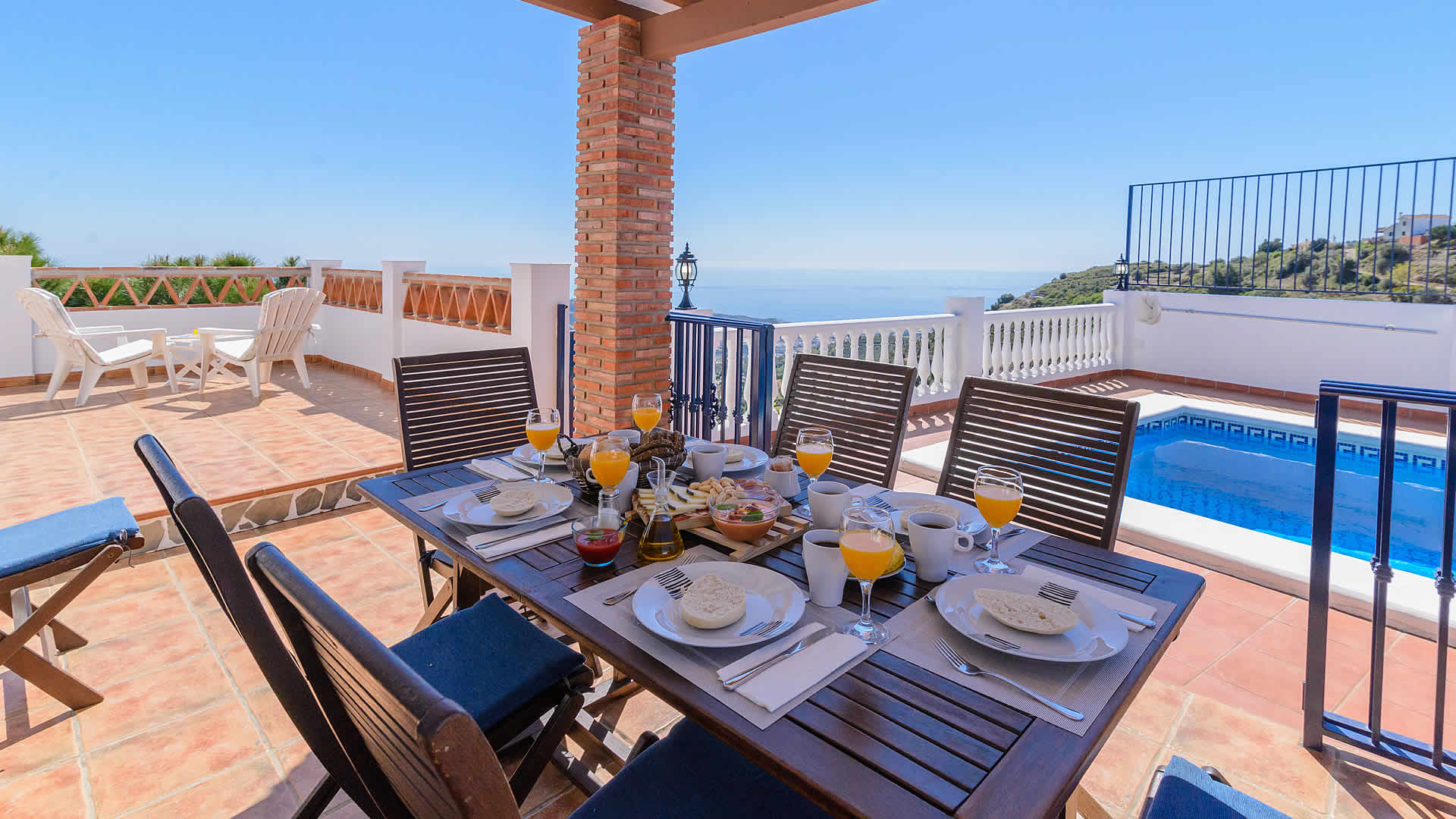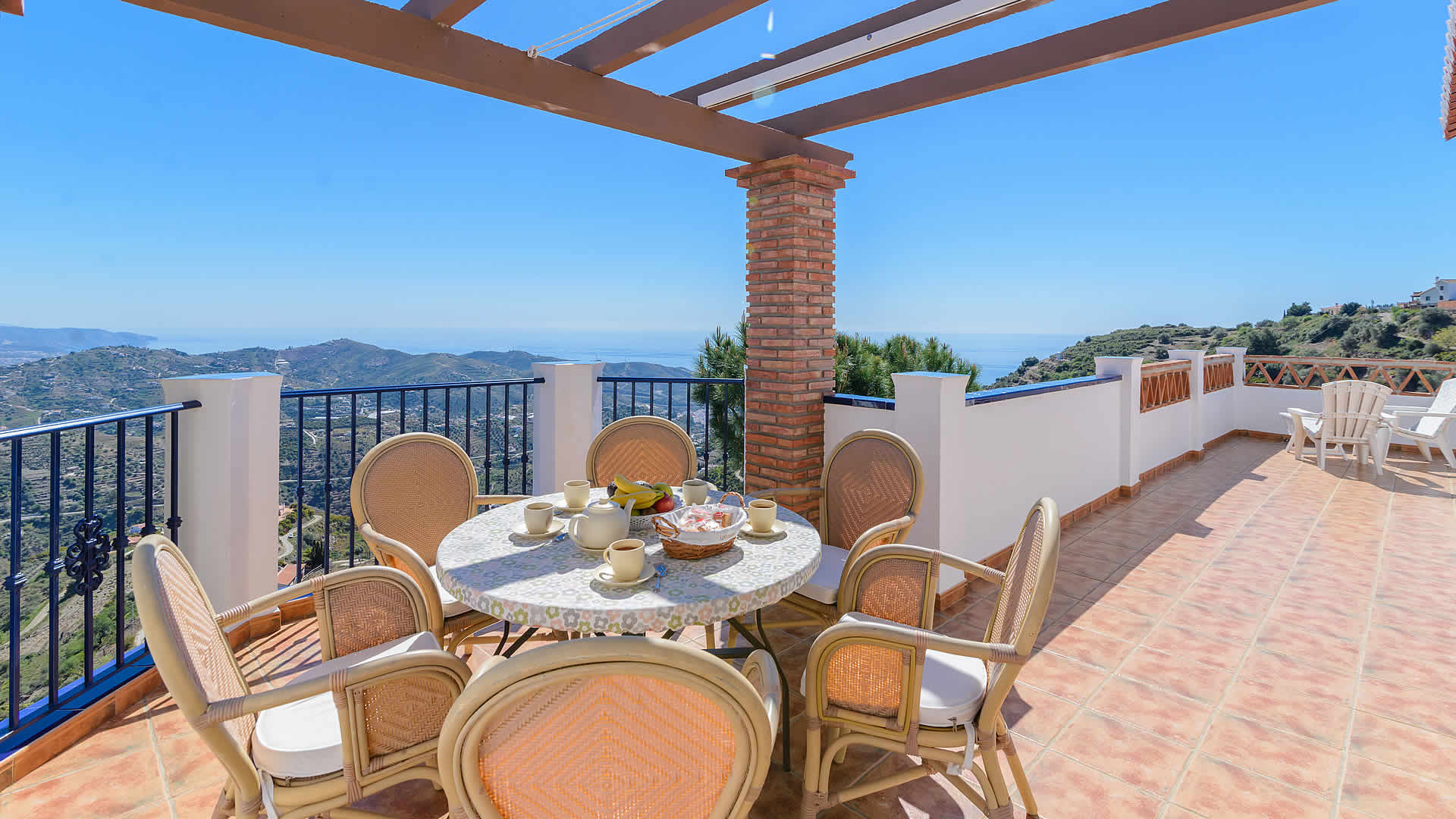 Su majestuosa situación, en una zona muy tranquila rodeada de almendros, facilitará que se sentirá en un lugar privilegiado, disfrutando de maravillosas vistas al pueblo, al mar y como telón de fondo las frondosas sierras de Almijara y Tejeda. A las playas de Torrox Costa (8 km) se llega en 15 minutos en coche, mientras las tiendas, restaurantes y bares de Torrox Pueblo (6,5 km) están aun más cerca. Es ideal para pasar un verano con la familia o amigos. Disfrutará de las comidas en la estupenda zona exterior con amplias terrazas: a la primera se accede desde el salón comedor y a la otra se encuentra junto a la piscina. La tercera terraza esta situada junto al dormitorio principal. La piscina de 7x3,5 metros, es ideal para tomar el sol (hay hamacas). Cada terraza disfruta de unas excelentes vistas y los amantes de la parilla tendrán una barbacoa a su disposición.