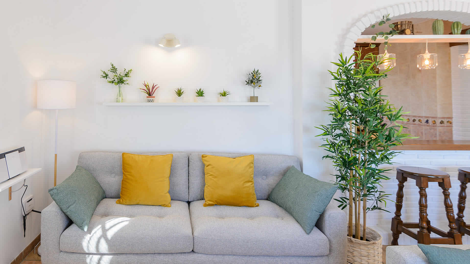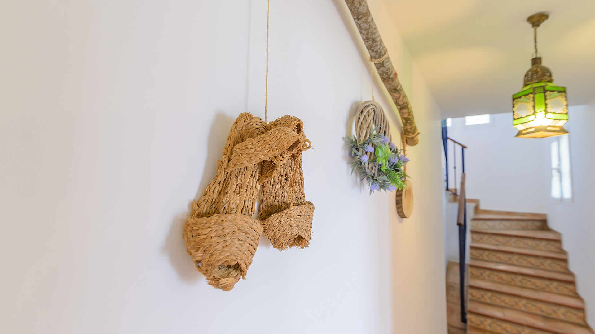 El interior es muy luminoso, cómodo y decorado con buen gusto. La villa cuenta con un salón con chimenea y televisión por satélite. La amplia cocina cuenta con vitro cerámica, horno eléctrico, microondas, nevera, congelador, lavavajillas y lavadora. Desde el salón, hay una escalera que da acceso a tres dormitorios: uno con cama de matrimonio y otros dos con dos camas individuales cada uno. En esta planta hay también un baño completo. El cuarto dormitorio se encuentra en la primera planta es de tipo suite, con baño dentro y terraza privada. Internet WiFi disponible (gratuito).