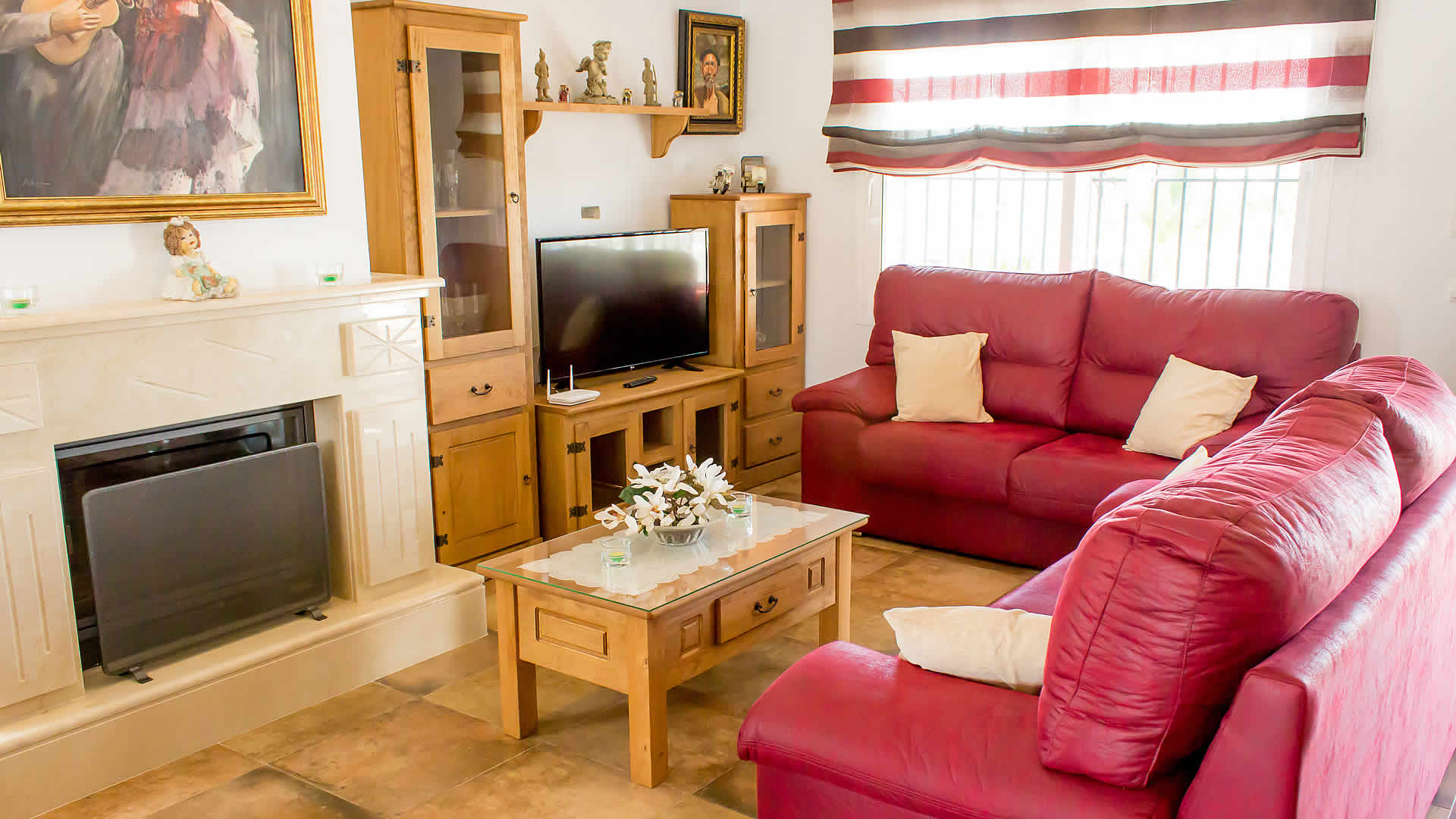 The dedication of the owners for the outside areas of this villa is also reflected in its interior. With all the rooms in a single floor, this it is a very modern and comfortable villa with a lot of space. The furniture and the decoration are of excellent quality and have been chosen with eye for detail, evoking a homely feel.The spacious, open-plan living/dining/kitchen offers comfortable seating and an open fireplace to warm up the villa on the cooler days in off-season, whilst the air conditioning will be a welcome feature on the hottest days. A large flat-screen TV with satellite reception is provided. The open-plan kitchen is fully fitted and equipped with all nowadays appliances: a 4 rings hob, oven, microwave, double door fridge/freezer, dishwasher and washing machine.With 2 double and 2 twin bedrooms, the villa offers space to 8 persons. The master bedroom has an ensuite shower room with WC and wash basin. A second shower room is also provided with WC and wash basin.Extras: free Wifi, free air conditioning throughout and Bluetooth speaker.
