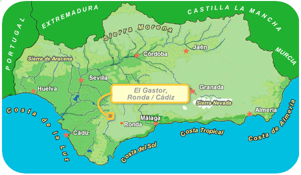 Como un secreto bien guardado, le costará un poquito encontrar el camino de campo que sube durante unos 2 kms, aunque no va muy pendiente. Un vez arriba, quedará maravillado con las vistas y con la tranquilidad que reina aquÃ. Es un sitio para disfrutar unas vacaciones relajadas cerca de la piscina, sin obligaciones y con tiempo para echar una buena siesta. Si algún dÃa entran ganas de ver los alrededores, tendrá suficiente para descubrir: la casa se encuentra situada junto al Parque Natural de Grazalema y en la Ruta de los Pueblos Blancos, como son por ejemplo Zahara de la Sierra y Setenil. Una vida más metropolitana encontrará en Ronda, a media hora en coche o en Arcos de la Frontera, a unos 45 minutos. Ambas ciudades comparten una rica historia y ofrecen un abanico de tiendas, bares y restaurantes. Nota: la Junta de Andalucia ha prohibido el uso de barbacoa en la zona de junio hasta finales de octubre